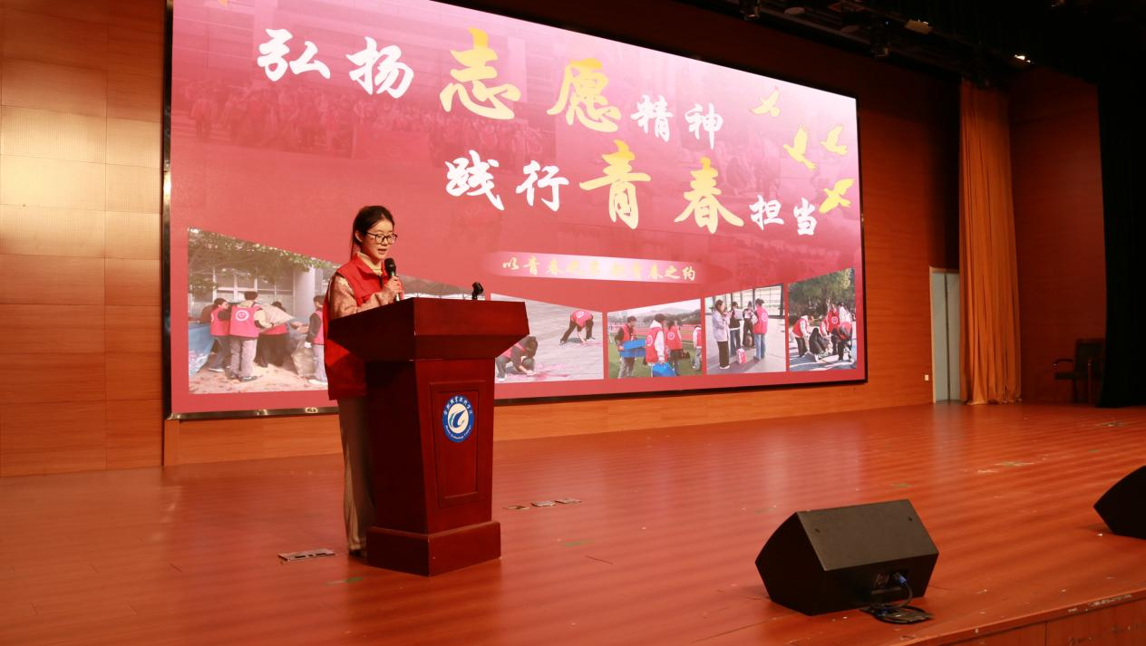 在“志愿心声・青春回响” 分享环节,24环艺班岳安琦、24酒管1班丁欣悦两位志愿者代表依次分享志愿服务经历。她们以朴实的语言,讲述了从初次参与时的忐忑懵懂,到长期坚守中的成长蜕变与温暖感悟,展现了青年志愿者的责任与担当。真挚动人的分享引发全场共鸣,赢得阵阵掌声。