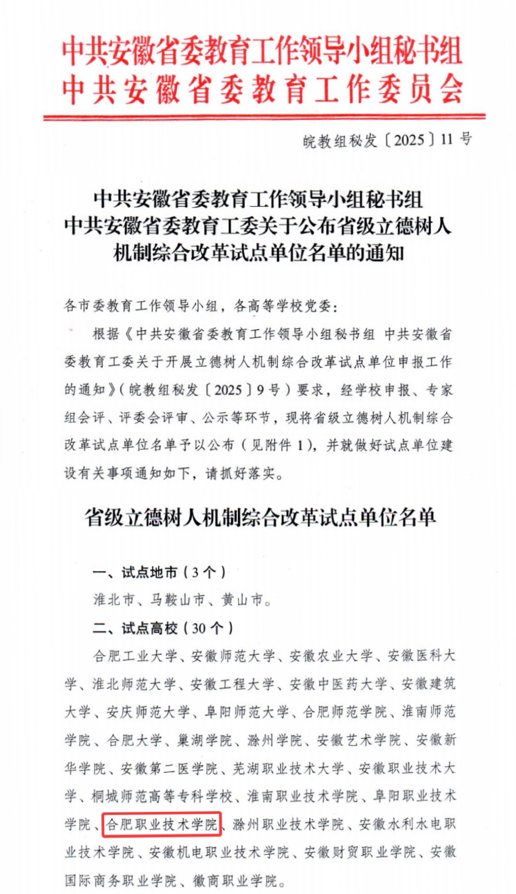 2.我校获批安徽省立德树人机制综合改革试点高校