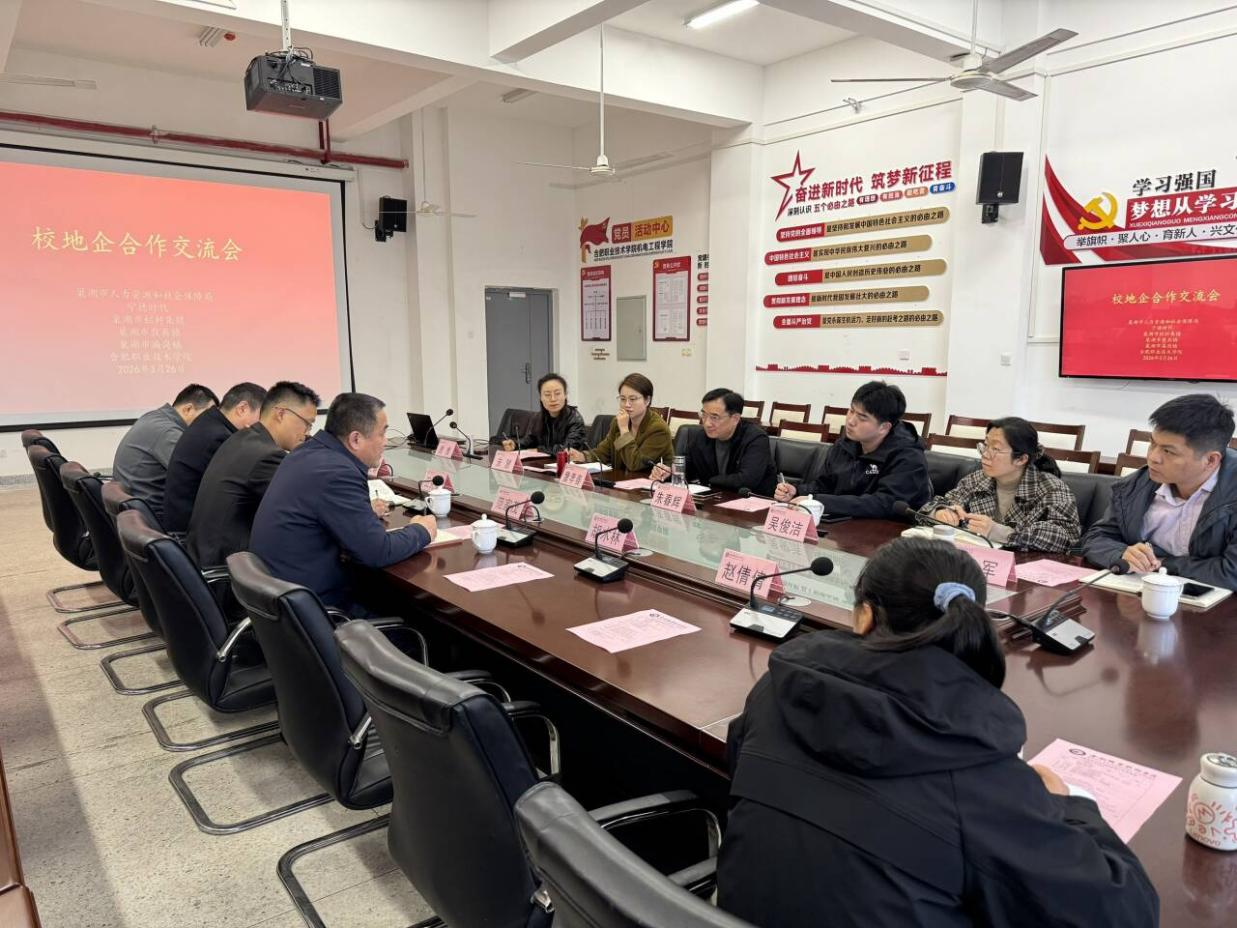 为深化产教融合、赋能区域产业发展,3月26日上午,巢湖市人力资源和社会保障局、宁德奇瑞及巢湖市栏杆集镇、散兵镇、庙岗镇负责人一行6人来我校开展校地企合作交流洽谈。学校党委委员、副校长范家茂,学生处、机电工程学院、经贸旅游学院、信息传媒与工程学院负责人及负责实习就业教师参加洽谈。双方围绕人才培养、实习就业、校企协同育人等核心议题展开深入研讨。