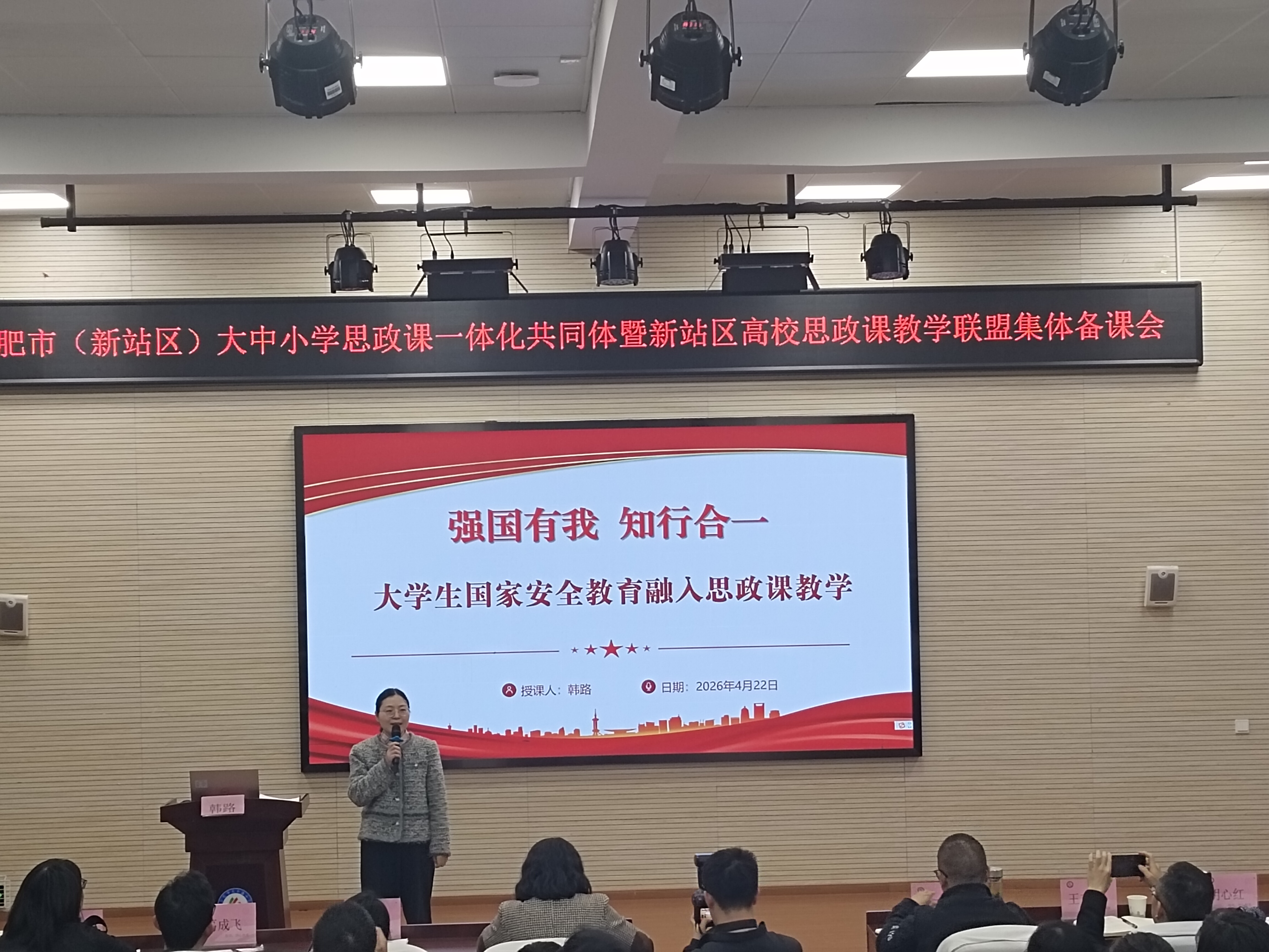 为深入推进大中小学思政课一体化建设,强化区域思政教育协同联动,推动国家安全教育有机融入思政课堂,4月22日下午,由我校主办、合肥市天水路小学承办的合肥市(新站区)大中小学思政课一体化共同体暨新站区高校思政课教学联盟集体备课会在天水路小学召开。共同体和联盟各成员单位负责人及教师代表齐聚一堂,共商思政课改革创新,共筑学段衔接育人新格局。
