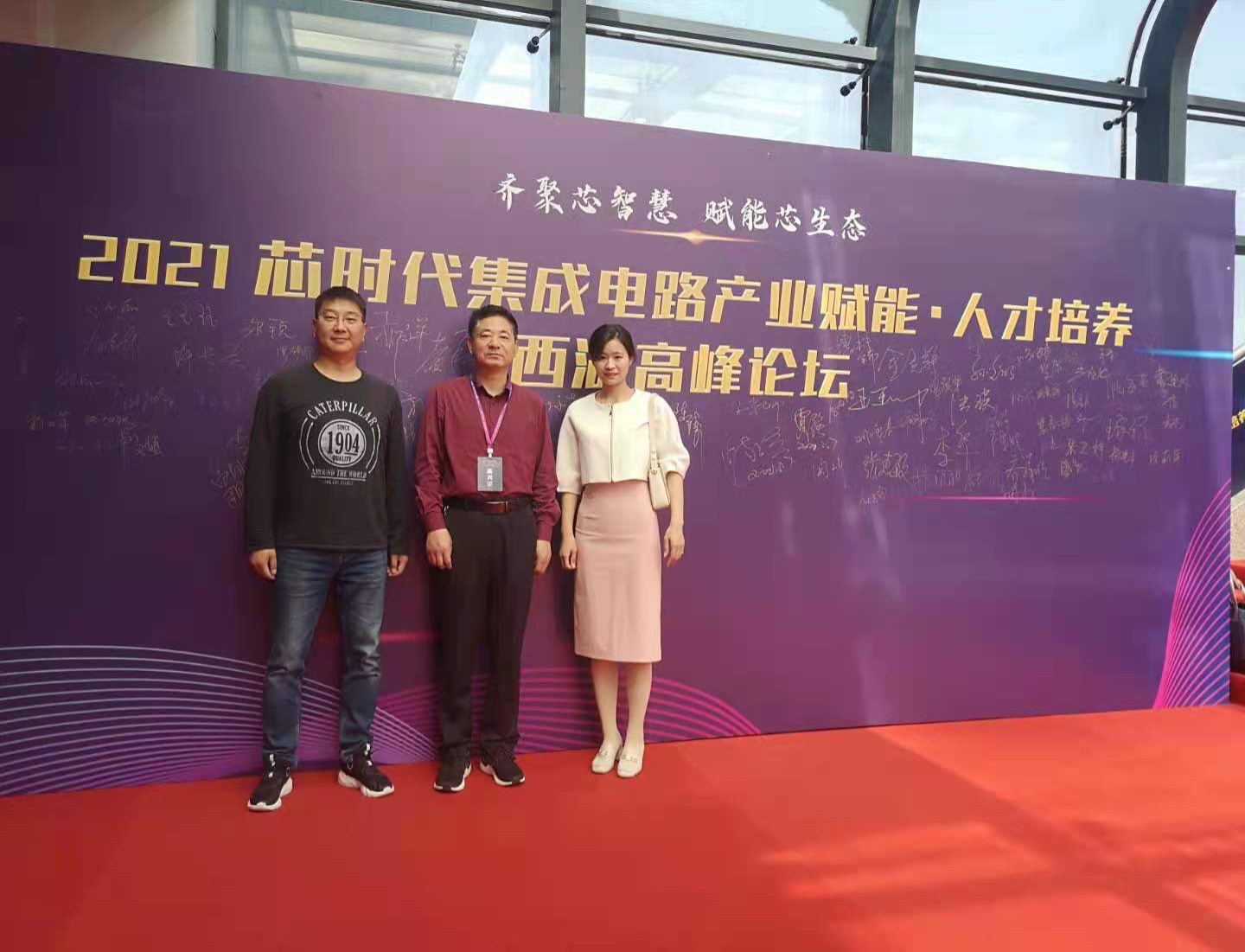 为精准对接合肥主导产业,推动产教融合校企合作,培养高水平技术技能型人才,日前我校信传学院院长章炳林教授、教学办主任盛凯、综合办主任吕菲一行参加2021芯时代集成电路产业赋能·人才培养西湖高峰论坛,并签订校企合作协议,依托新一代信息技术产教融合实训基地共建集成电路产业学院。