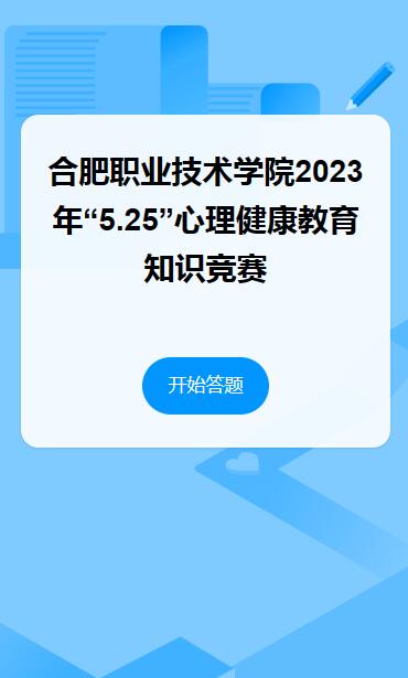 大学时光是一个人最美的年华,是心理成型的关键时间,为了增强我校学生的心理适应能力,普及心理健康知识,引导广大合职学子关注心理健康,培育理性平和的健康心态,学生处心理健康教育指导中心联合各二级学院心理辅导站于5月8日-5月14日举办了线上“5·25”心理健康知识竞赛。
