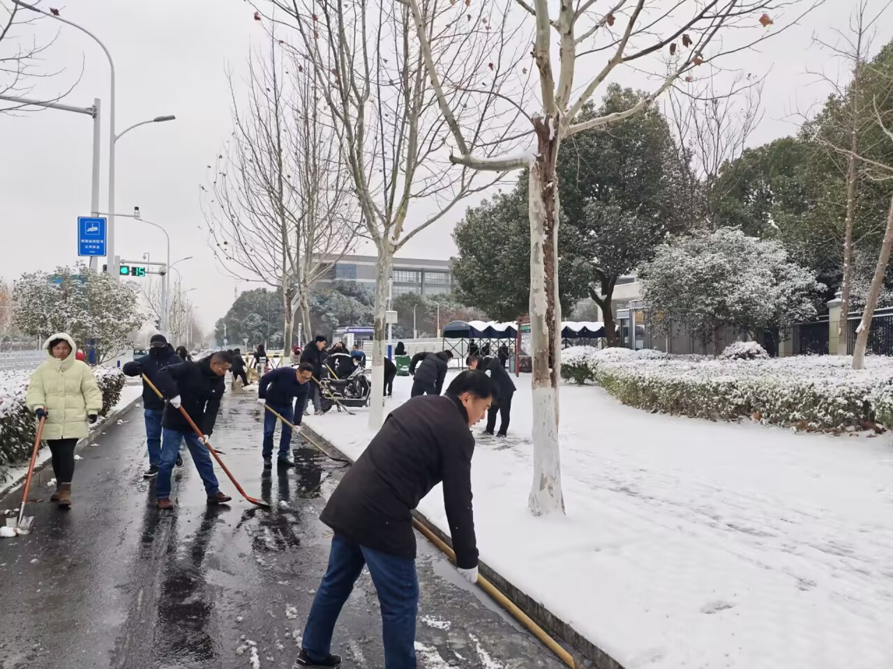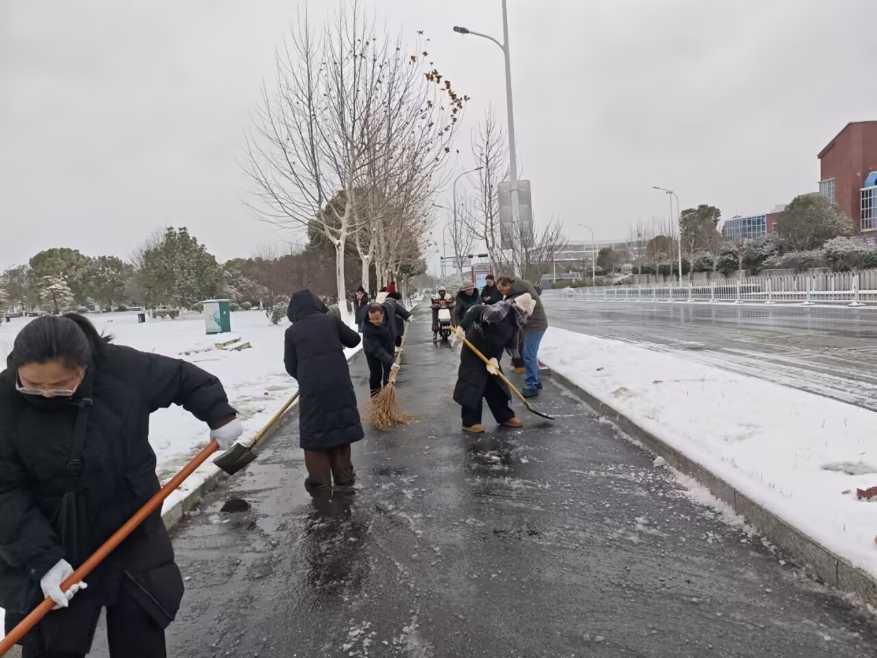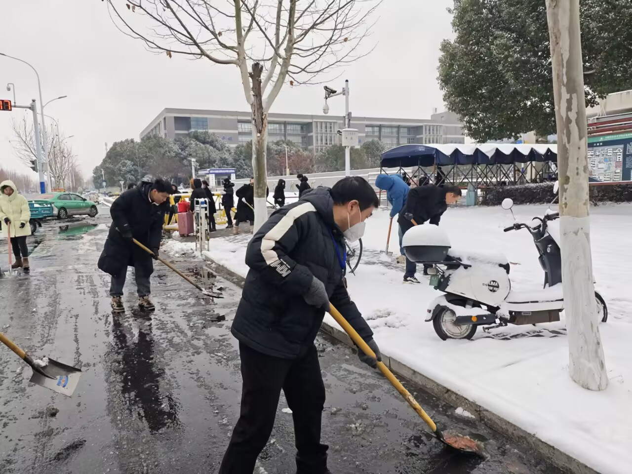 昨夜,一场降雪为城市披上银装,却也给道路交通和市民出行带来了不便。为确保校园周边道路畅通,保障附近居民及师生的出行安全,我校鼓山校区教职工积极响应巢湖市政府号召,迅速组织教职工开展义务扫雪除冰行动。