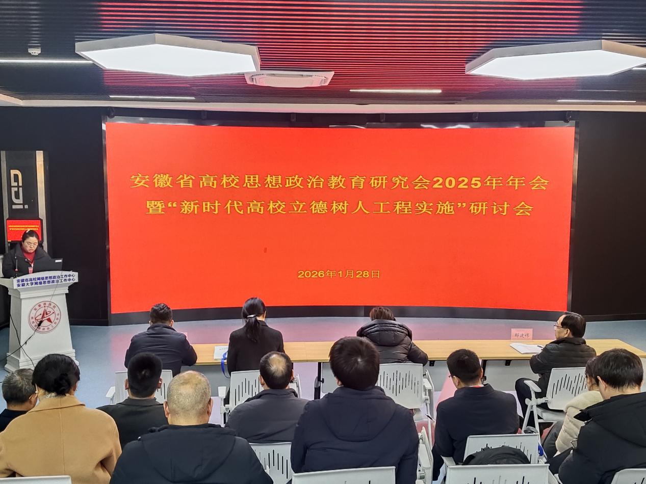 本次会议由安徽省高校思想政治教育研究会主办,网络思政工作分会承办,安徽大学党委宣传部(网络思想政治工作中心)协办,以“新时代高校立德树人工程实施”为核心主题,汇聚了全省高校思政领域的专家学者。会议由安徽大学党委副书记钱海主持,省教育厅思政处处长王后林作主旨报告。会议设置开幕式、理事大会、专题报告、平行分论坛研讨及会议总结等多个环节,旨在深入贯彻新时代高校立德树人根本任务,推动思想政治教育改革创新。