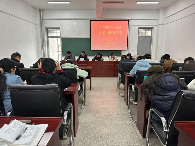 2月28日上午,生物工程学院在生化楼A305会议室召开教职工大会暨二月份主题党日活动。会议由该院党总支副书记(主持党总支工作)慈龙保主持,全体教职工齐聚一堂,共启新篇。