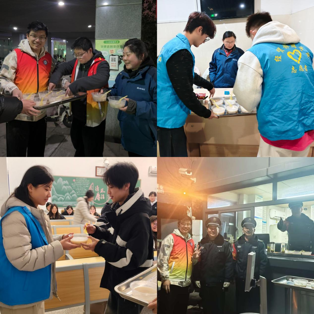 汤圆煮熟后,志愿者们带着热气腾腾的汤圆,先后前往学生公寓与校园安保岗位,将这份甜蜜送到宿管阿姨与保安师傅手中。一句句“元宵快乐”“您辛苦了”,温暖了校园守护者的心。收到汤圆的宿管与安保人员脸上洋溢着笑容,纷纷为同学们的暖心举动点赞,校园里处处洋溢着和谐温暖的节日氛围。