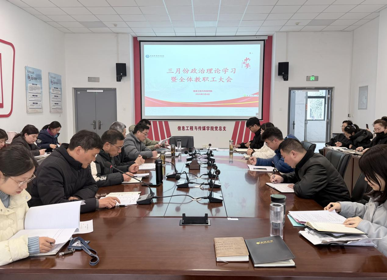 为持续强化政治理论武装,统一思想、凝聚共识,统筹推进新学期各项重点工作落地见效,3月4日,信息工程与传媒学院在信息楼会议室召开3月份政治理论学习暨全体教职工大会。校党委委员、纪委书记何军,该院党总支副书记(主持工作)王继强,院长尹宗平及党总支成员,全体教职工参加了此次会议。会议由该院副院长张克柱主持。