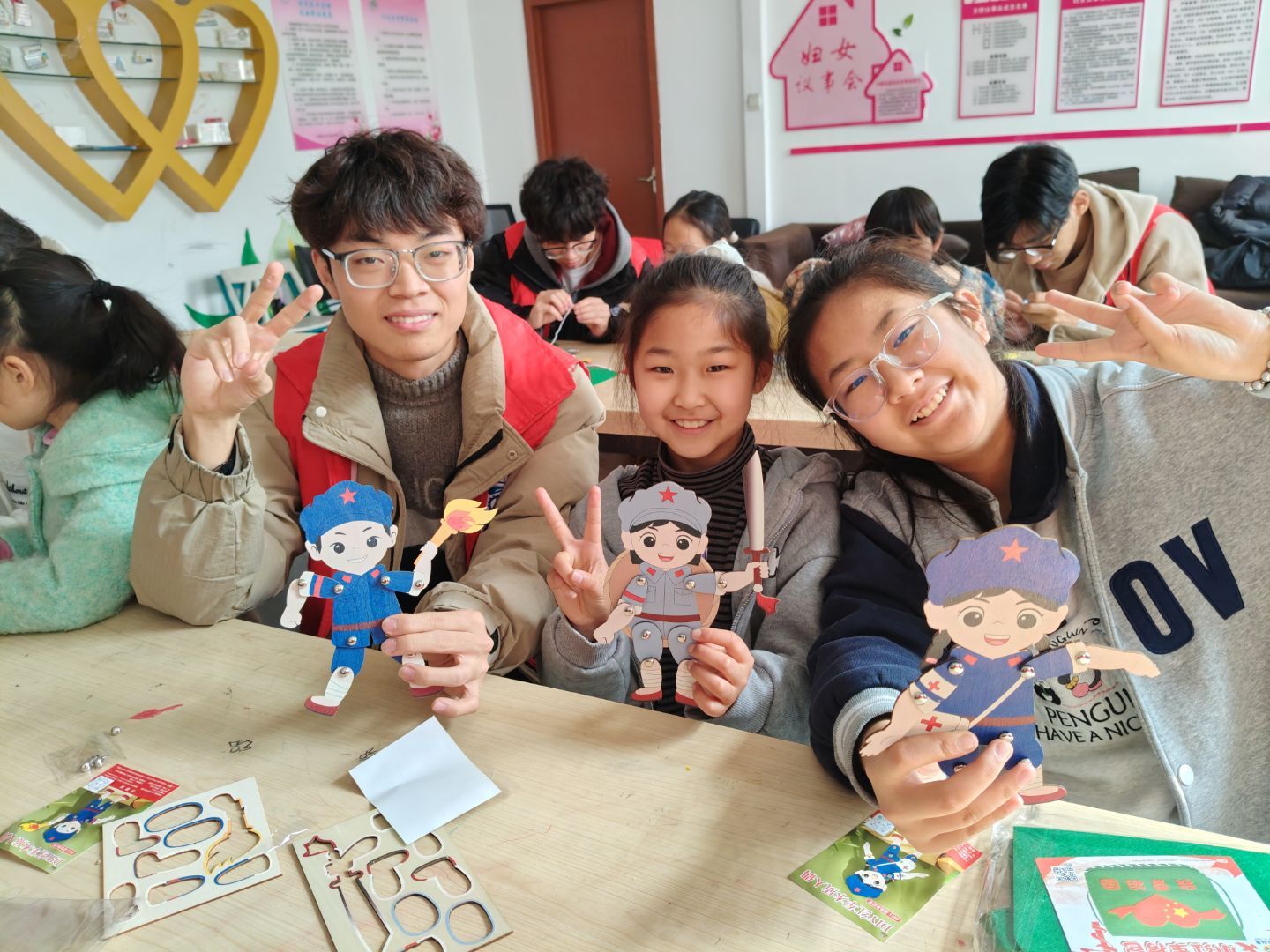 手工体验环节也亮点十足,志愿者提前准备好材料及工具,带领孩子们动手拼接红军人偶和小飞机。指导红军人偶拼接时,志愿者同步讲解红军英雄事迹,让孩子们在动手中铭记红色历史。拼接小飞机时,志愿者演示技巧、引导,孩子们专注协作,一个个精致的作品陆续成型,脸上满是成就感。