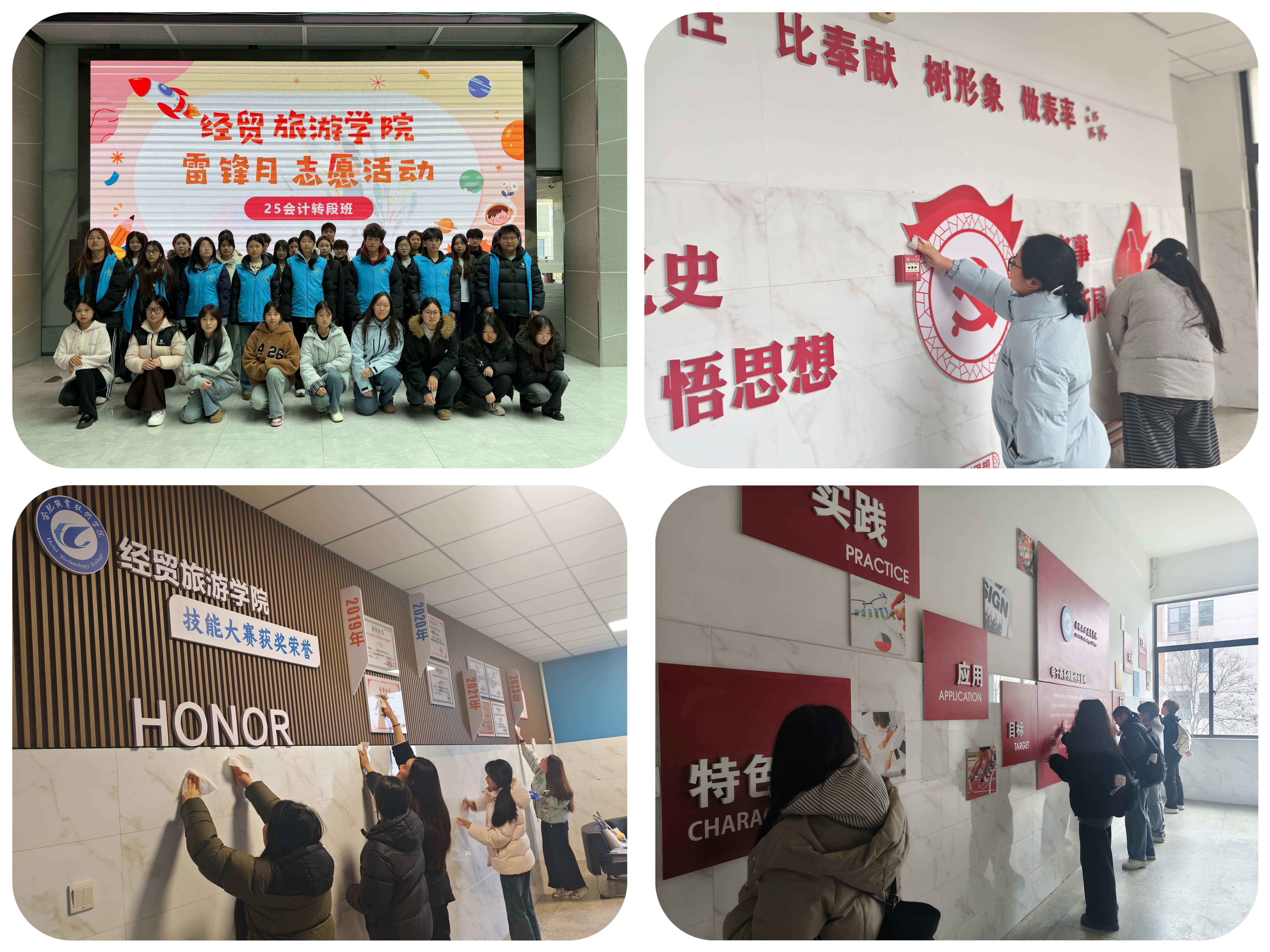 为大力弘扬雷锋精神,引导青年团员深刻领悟雷锋精神时代内涵,将无私奉献、爱岗敬业的崇高品格内化于心、外化于行,在第63个学雷锋纪念日到来之际,为深入传承和弘扬雷锋精神,将“螺丝钉精神”与“钉子精神”融入实践,经贸旅游学院各支部开展“学雷锋”系列主题教育活动,通过主题教育、实践活动传温暖的形式,让雷锋精神在校园落地生根,以实际行动诠释新时代青年的责任与担当。