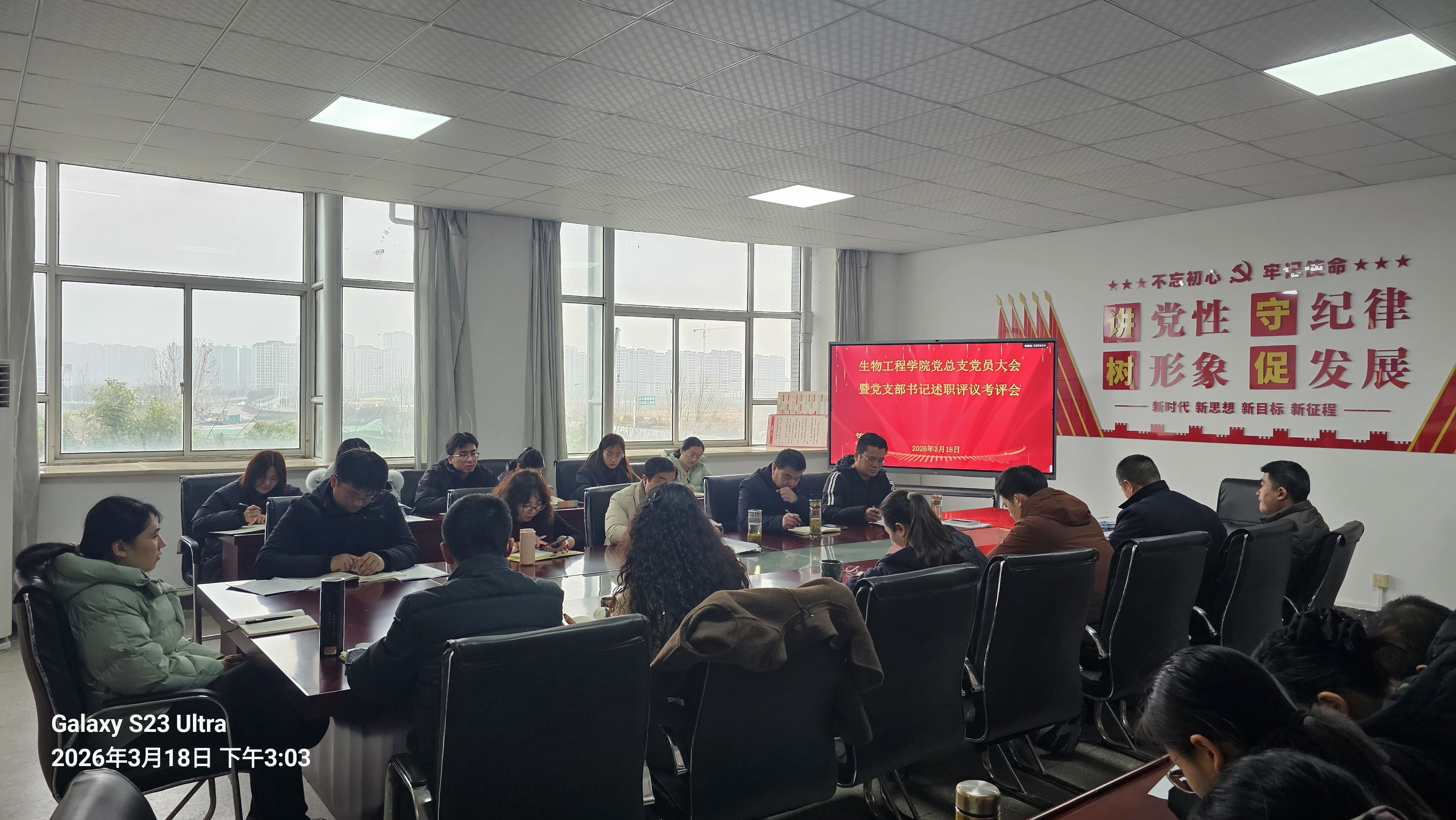 为深入贯彻树立和践行正确政绩观学习教育相关要求,压实基层党建工作责任,以高质量党建引领学院事业高质量发展,3月18日下午,生物工程学院党总支在生化楼A311党员活动室召开全体党员大会暨党支部书记述职评议考核会。该院全体党员参加,会议由该院党总支副书记(主持党总支工作)慈龙保主持。