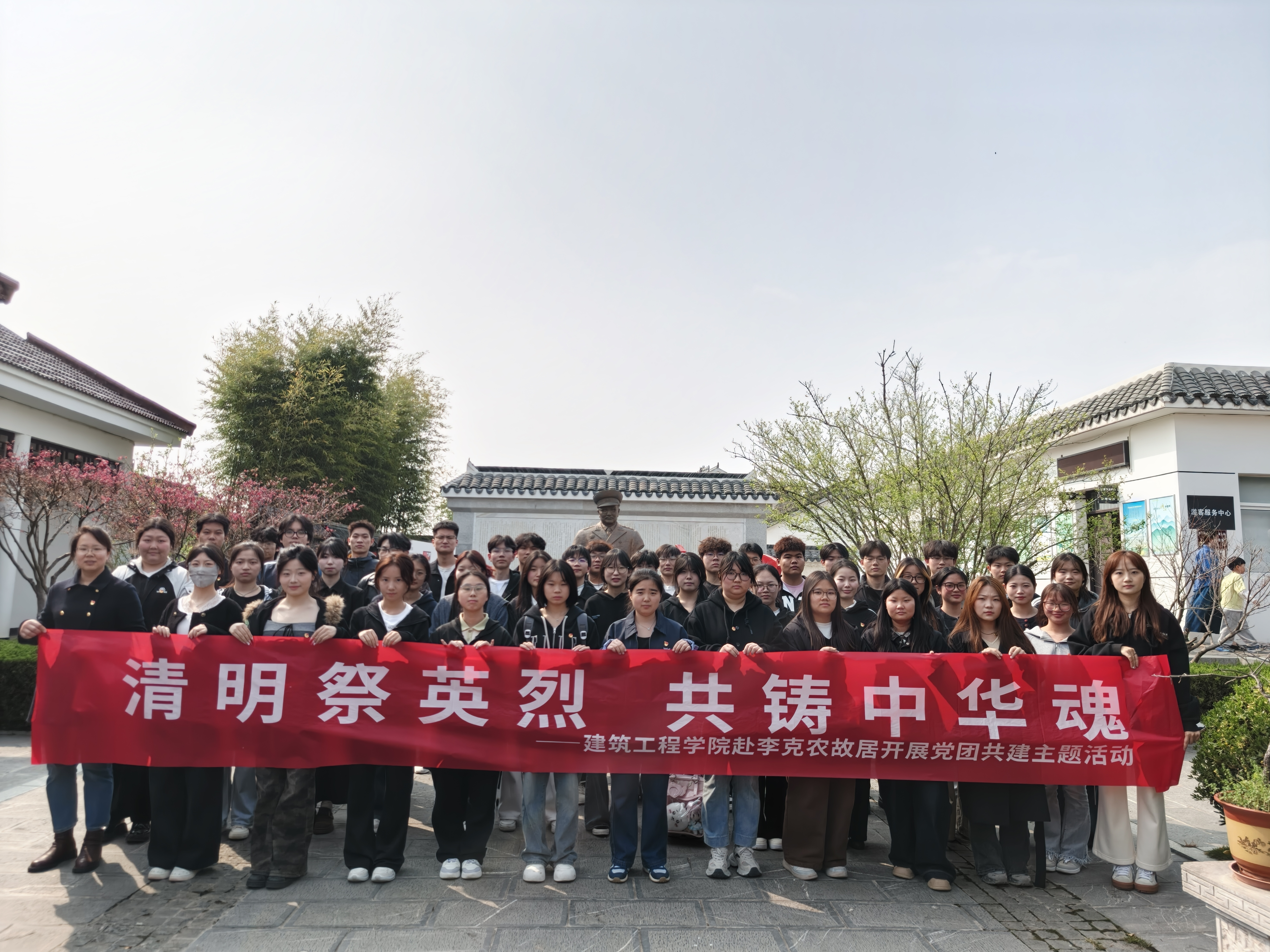 青山埋忠骨,史册载功勋。在清明节来临之际,为深入学习贯彻党的二十届四中全会精神,深切缅怀革命先烈的丰功伟绩,教育引导青年学生传承红色基因、赓续共产党人精神血脉,弘扬爱国主义精神,切实增强党团组织的凝聚力和战斗力,4月1日下午,建筑工程学院第四、第五党支部联合该院团总支,组织支部学生党员、入党积极分子及该院共青团员代表,赴李克农故居开展“清明祭英烈,共铸中华魂”党团共建主题活动。