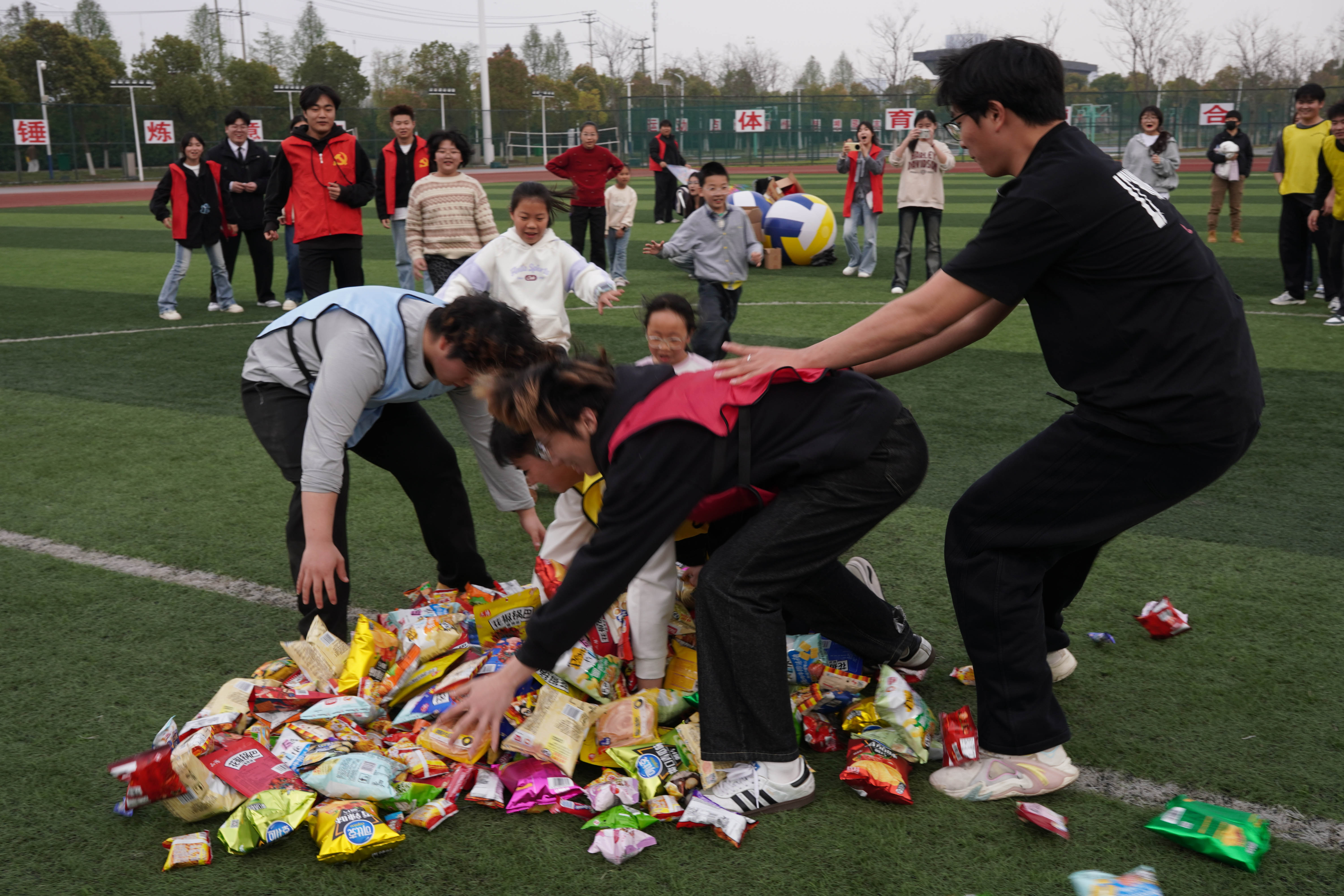 经过三轮、两个场地的车轮较量,最终依据积分排名,各小组获得了不同时长的“抢零食”资格。志愿者详细讲解规则后,万众期待的抢零食环节拉开帷幕。只见场地中央铺满了各式各样的零食,随着一声令下,同学们纷纷冲向零食区域,场面既激烈又欢乐。有的同学张开双臂奋力一扑,有的同学精准“扫货”,还有的团队默契配合、分工协作。虽然最终各小组收获的零食数量不一,但每个人脸上都洋溢着同样的满足与喜悦。