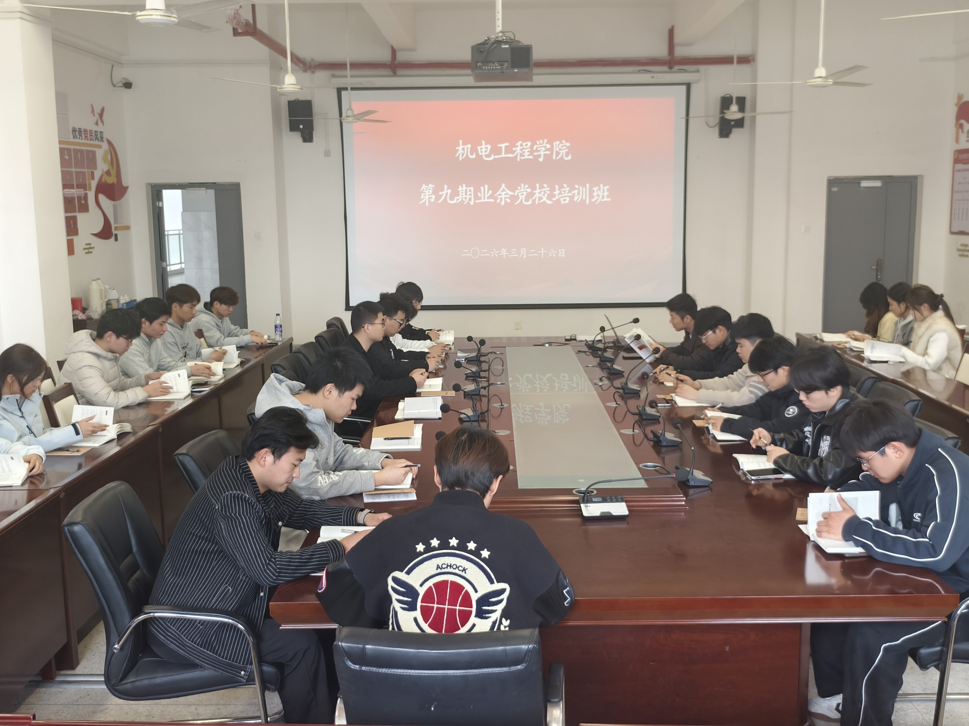 为提高发展党员工作质量,强化入党积极分子的理想信念,机电工程学院于3月23日至4月1日举办了第九期业余党校,该院入党积极分子参加培训。
