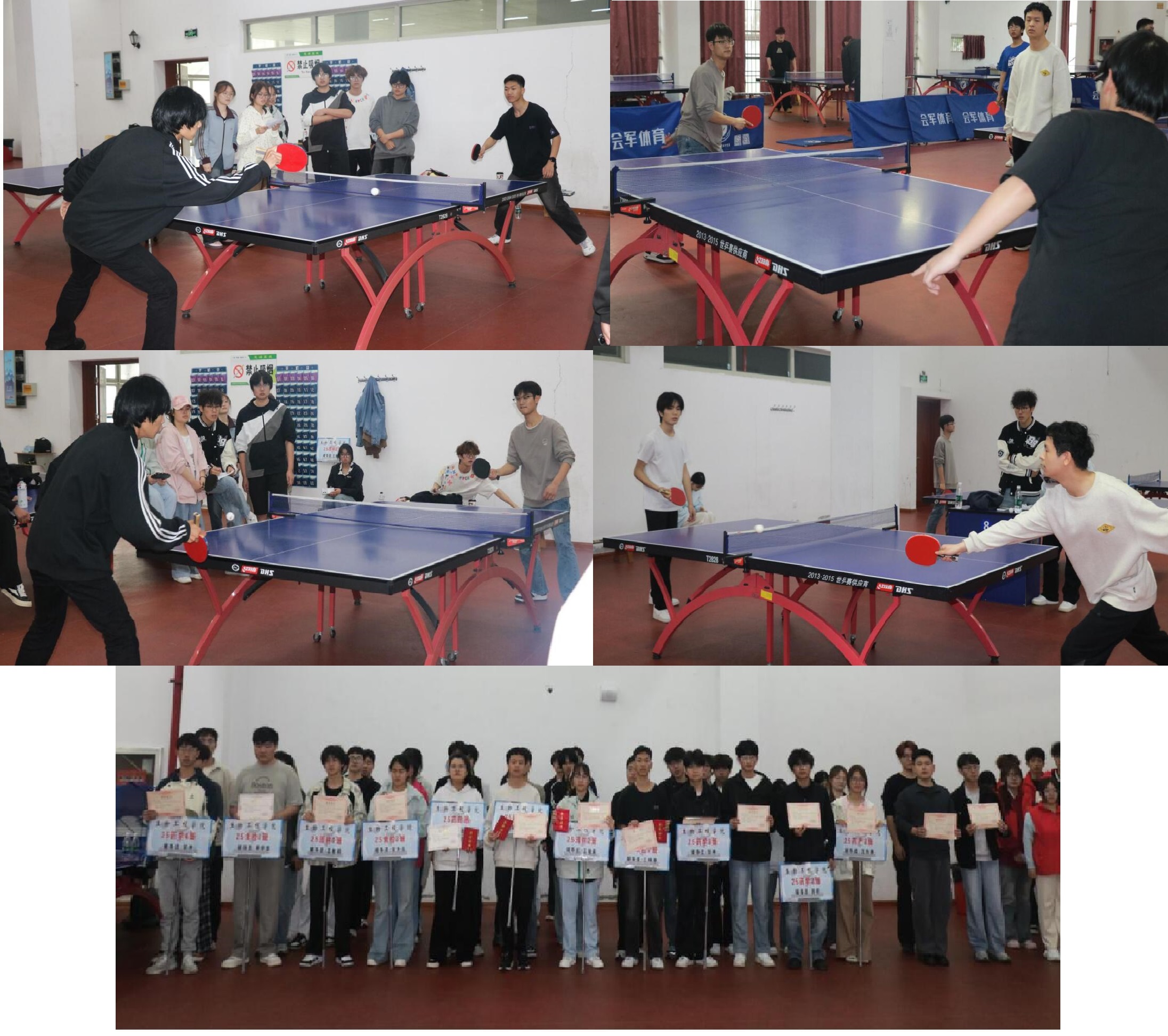 比赛现场氛围热烈融洽、秩序井然有序,处处洋溢着奋勇争先、朝气蓬勃的青春气息。参赛选手精神抖擞、身姿灵动,迅捷步伐辗转驰骋于球台两侧,旋球、扣杀、快搓、拉吊等精湛技法轮番上演,攻防衔接紧凑流畅,每一回挥拍、每一次对拉都精彩纷呈、扣人心弦。选手们凝神专注、斗志昂扬,纵然汗水浸透衣衫,依旧全力以赴、分毫不让,奋力拼搏角逐场上每一分精彩佳绩。25药学1班凭借精湛球技与默契配合,一路过关斩将斩获本次比赛冠军,25园林2班奋勇拼搏拿下亚军,25药质队荣获第三名,教师代表1队获得第四名。