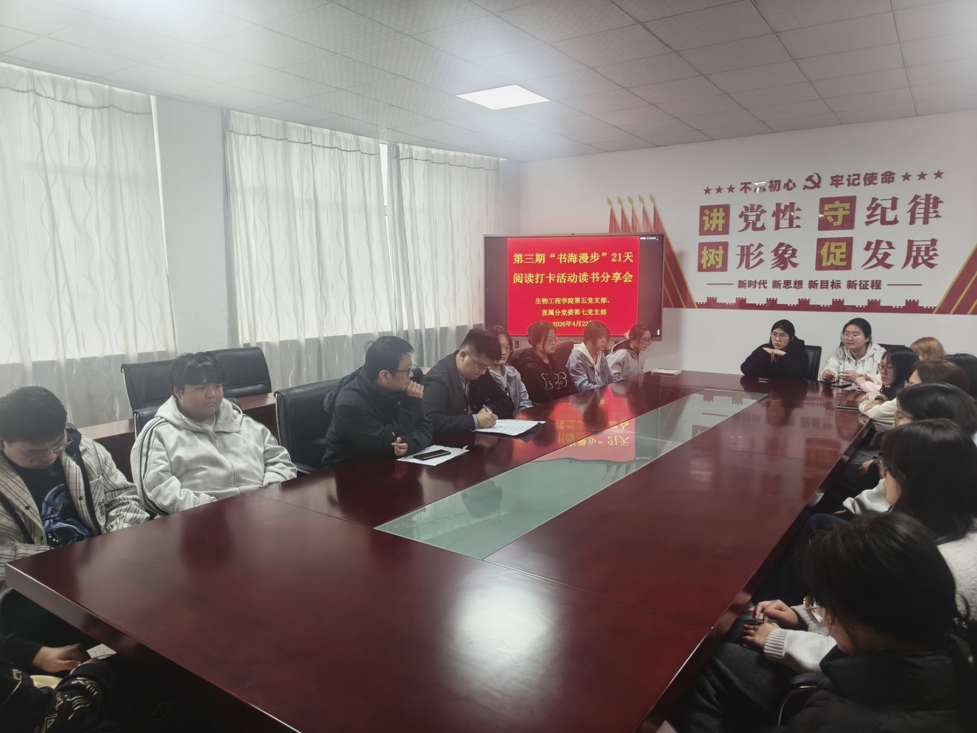 在第29个“世界读书日”来临之际,为深入学习贯彻习近平新时代中国特色社会主义思想,扎实推进学习型党组织与书香校园建设,近期,生物工程学院第五党支部联合直属分党委第七党支部开展“联学共建聚合力 书香致远践初心”党建联建读书打卡与分享活动,以阅读致敬世界读书日,以分享凝聚奋进力量。支部的党员教师、入党积极分子、入团积极分子等师生代表一同参与,以阅读坚定初心、以分享凝聚共识、以学习赋能成长。
