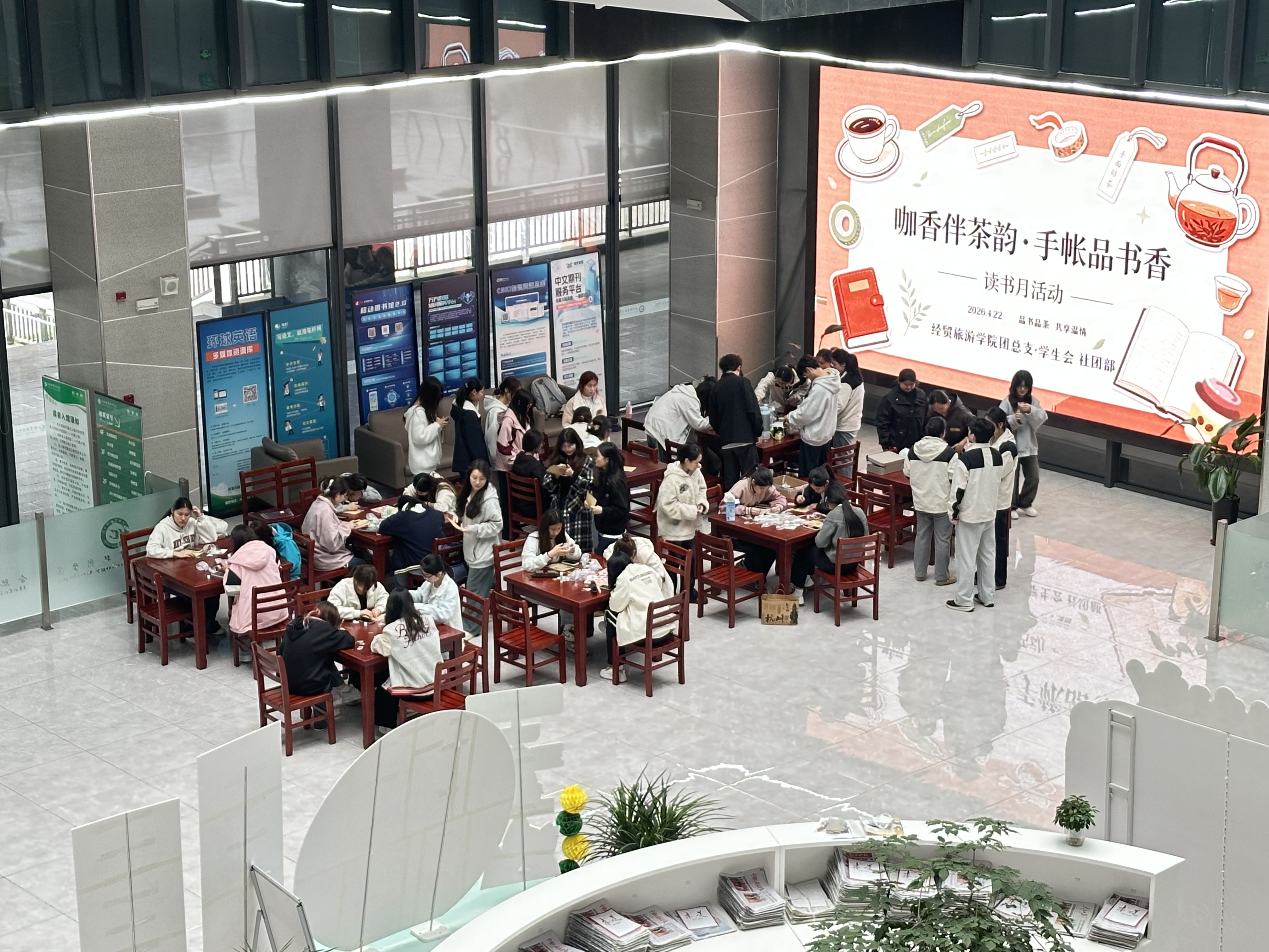 为深入推进校园文化建设,营造浓厚的书香校园氛围,创新读书活动形式,将传统文化、文旅特色与阅读推广深度融合,4月22日,经贸旅游学院以“咖香伴茶韵 手帐品书香”为主题,精心开展读书月特色实践活动。通过读书手帐制作、咖啡制作体验、非遗点茶工艺体验三大板块,让同学们在书香、茶香、咖香中感受阅读魅力,传承非遗文化,体验文旅生活美学,丰富课余精神文化生活。