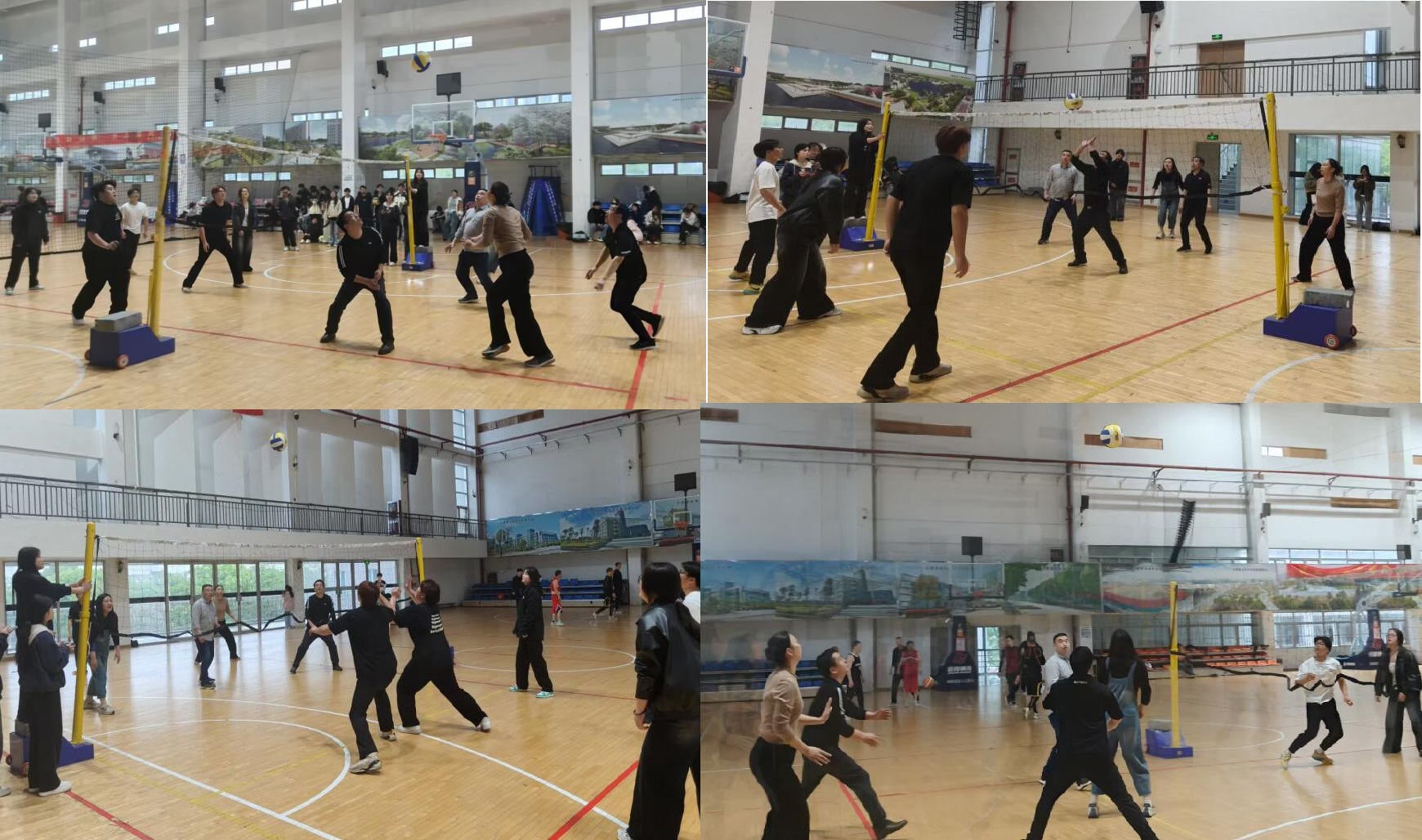 该院精心组建了教师精英队与学生精英队,其中学生队由24级各专业选拔优秀选手组成。随着一声清脆的哨响,比赛正式拉开帷幕。场上队员们精神抖擞,迅速进入状态。发球环节,选手们或稳健抛球大力扣发,或巧妙运用手腕力量打出旋转球,让对手防不胜防;接球时,大家迅速移动脚步,默契配合,飞身救球、精准垫球、有力传球的精彩瞬间接连不断。赛场上,平日里严谨认真的教职工们化身活力四射的运动员,尽情挥洒汗水,他们时而为打出精彩配合击掌相庆,时而为出现失误互相鼓励。场边由25级学生组建拉拉队也用此起彼伏的加油声、呐喊声为比赛增添了热烈的氛围。