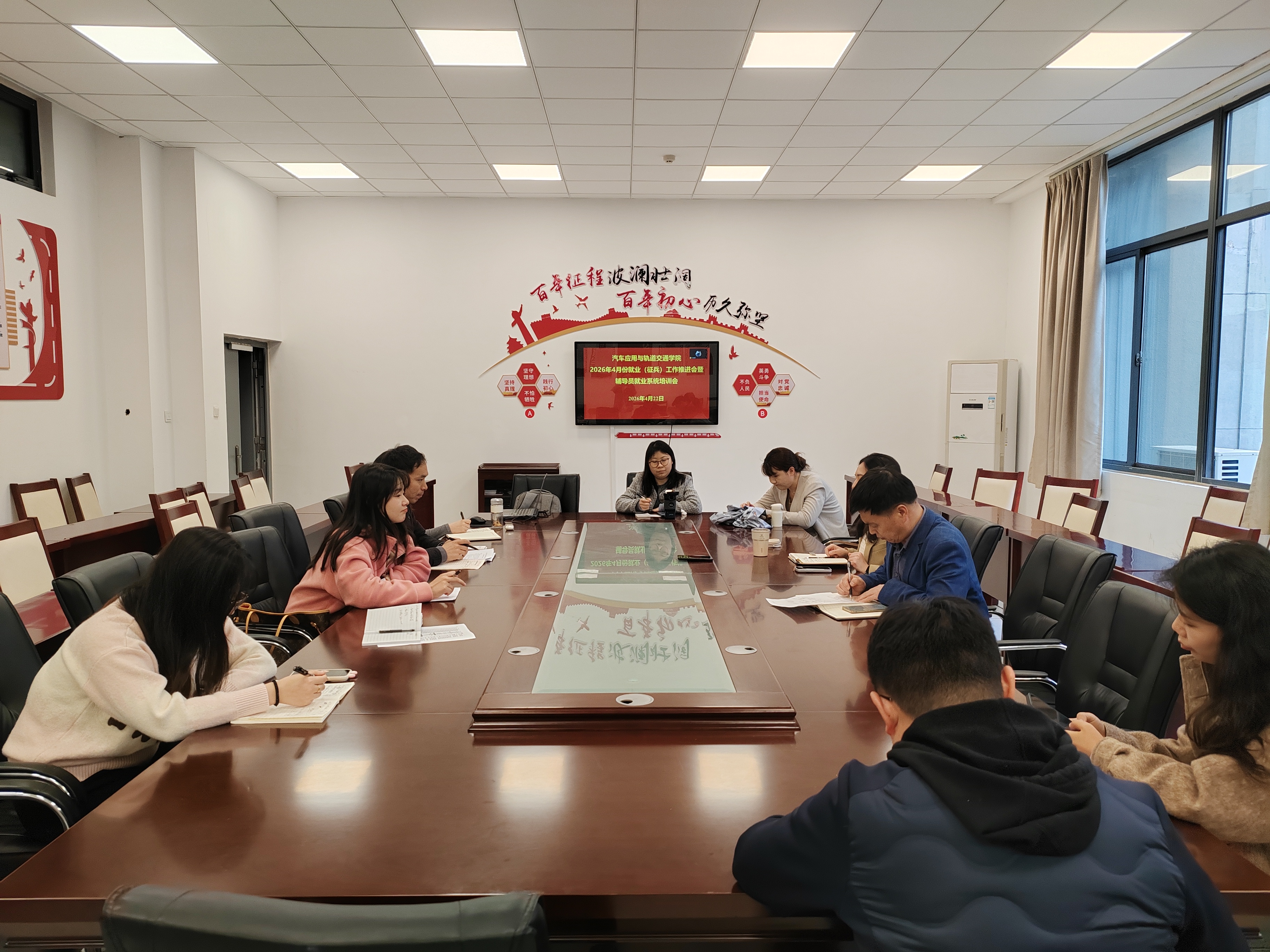 为全面推进2026届毕业生高质量就业工作,4月22日下午,汽车应用与轨道交通学院在汽车轨道楼207召开就业(征兵)工作推进会暨辅导员就业系统培训会。该院党总支副书记(主持工作)尹仕果、党总支副书记梁雯婷、2026届毕业班全体辅导员及就业工作老师参加会议。