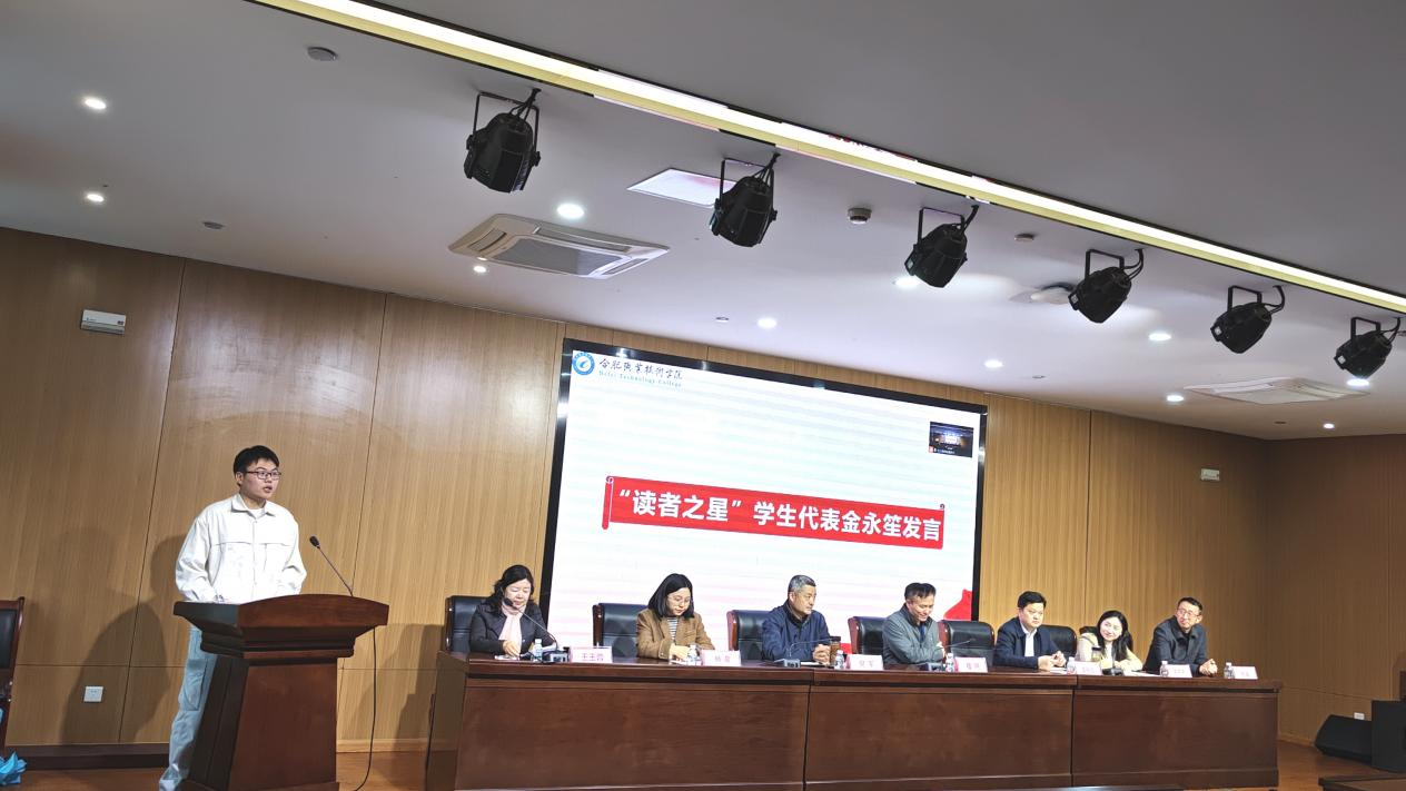 檀明在开幕式上发表致辞。他强调,全校师生必须认真学习习近平总书记关于《推动全民阅读,建设书香社会》的一系列重要论述,以《全民阅读促进条例》颁布为契机,以“阅践合一,笃行致远”为主题,深入推进书香校园建设,营造“爱读书、读好书、善读书”的浓厚文化氛围。他指出,在知识更新加速的时代,唯有终身学习才能紧跟时代步伐,赢得主动与未来。同时,他向全校师生提出了三点希望:以书润心,多读红色经典与优秀传统文化典籍,做有理想、有情怀的人;以书增智,将阅读与专业学习紧密结合,做勤学习、精技能的工匠人才;以书为伴,养成终身阅读的良好习惯,让阅读成为刻在骨子里的自觉。最后,他勉励师生珍惜这段师生共享的读书时光,静心沉浸书海,以读润心、以行证知、步履坚实,行稳致远,为学校职业本科建设和高质量发展贡献力量。