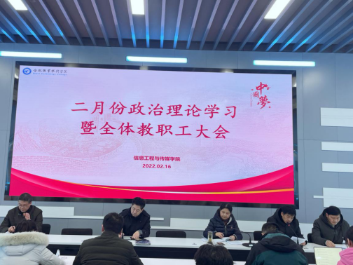 2月16日下午2:00,信传学院召开二月份政治理论学习暨全体教职工大会,会议吹响作风建设、勇开新局“冲锋号”,动员全体教职工全面落实责任、强化自律意识,提振精气神、砥砺奋进谱新篇,院党总支书记李红雨主持会议。