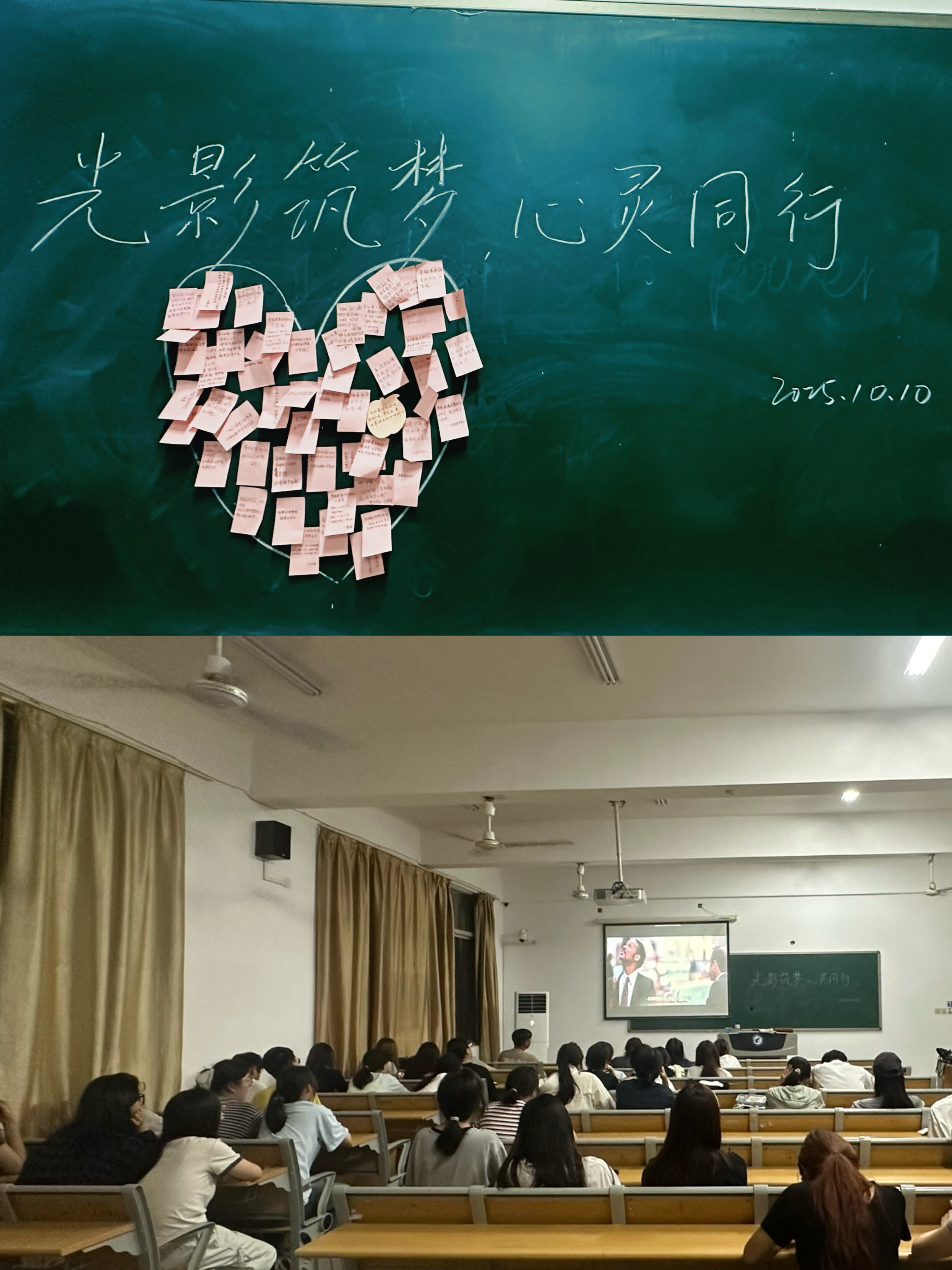 “心随影动”活动:汲取力量,树立正确心态。10月10日当天,该辅导站组织 60 余名同学观看电影《当幸福来敲门》。近两个小时的观影过程中,同学们全神贯注,被影片跌宕起伏的情节和主人公面对困境不屈不挠的精神深深吸引。观影结束后,大家在留言区纷纷写下感言,表达要以积极心态直面生活困境的决心。此次观影活动,让同学们在光影中探寻幸福的真谛,汲取心灵成长的力量,激励他们在面对挫折时保持坚韧,以乐观态度迎接挑战。