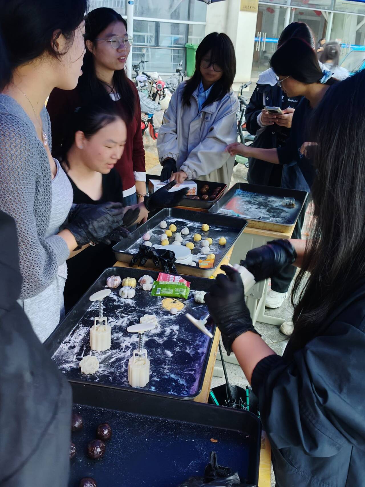 月饼DIY制作——手作传情,“饼”承心意。为弘扬中华优秀传统文化,增强同学们的动手能力与协作精神,魔幻烘焙社举办了一场趣味盎然的“DIY月饼制作”实践活动,同学们纷纷摩拳擦掌、跃跃欲试,迫不及待想亲手体验制作过程。揉面团时小心翼翼,包馅料时认真专注,偶尔手忙脚乱的小插曲也引得阵阵欢笑。活动现场气氛热烈,学生们互相帮助、交流心得,在合作中感受着制作的乐趣。