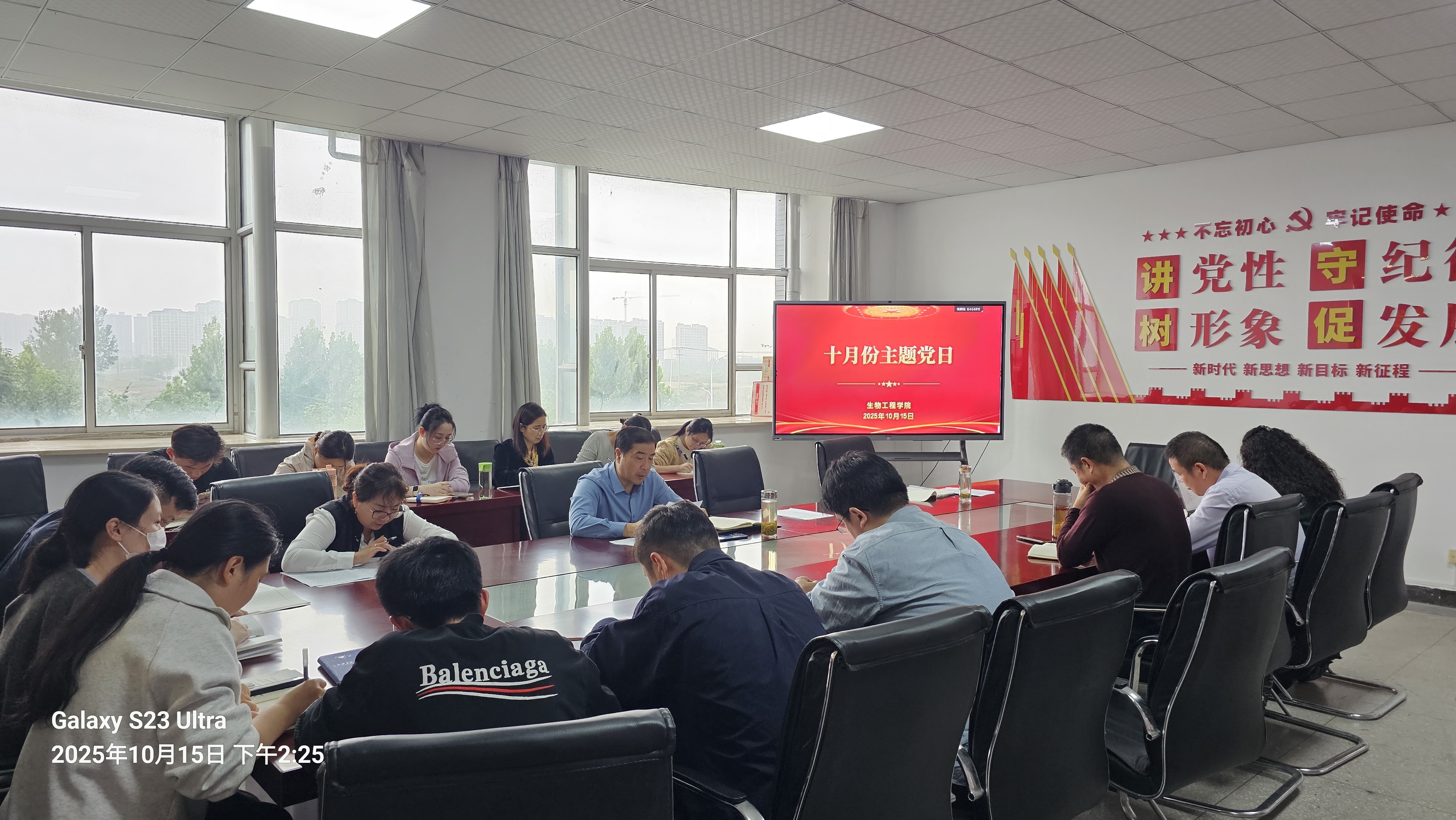 10月15日,生物工程学院党总支在生化楼A311党员活动室开展了十月份党员活动日活动。该活动由学院党总支副书记(主持党总支工作)慈龙保主持。