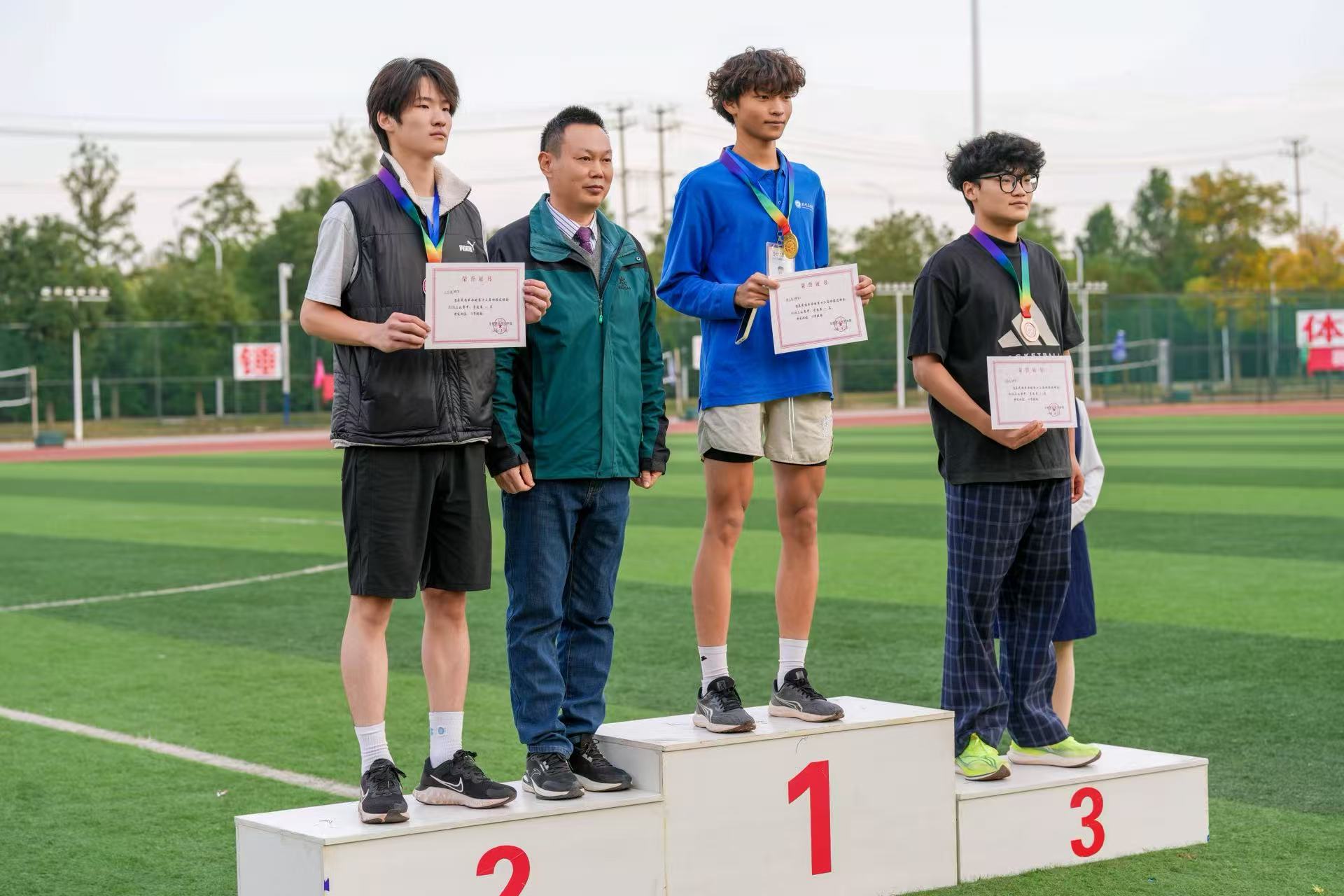 经过两天的激烈角逐,张可雨荣获5000米第一名和1500米第一名;谢文豪荣获跳高第一名和三级跳远第二名;朱雨乐在800米和1500米项目中分获第二名和第三名;祝浩杰在跳远项目中取得了第三名的好成绩。