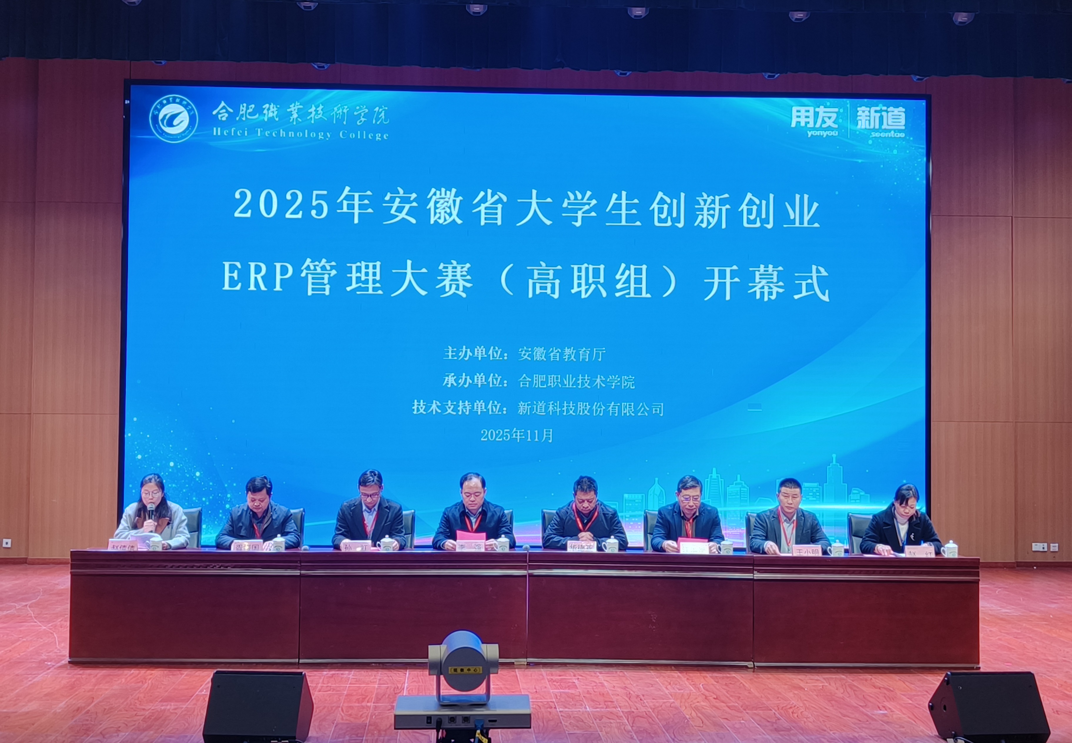 11月22日,由安徽省教育厅主办、我校承办、新道科技股份有限公司提供技术支持的“2025年安徽省大学生创新创业ERP管理大赛(高职组)”在我校大学生活动中心报告厅圆满落幕。