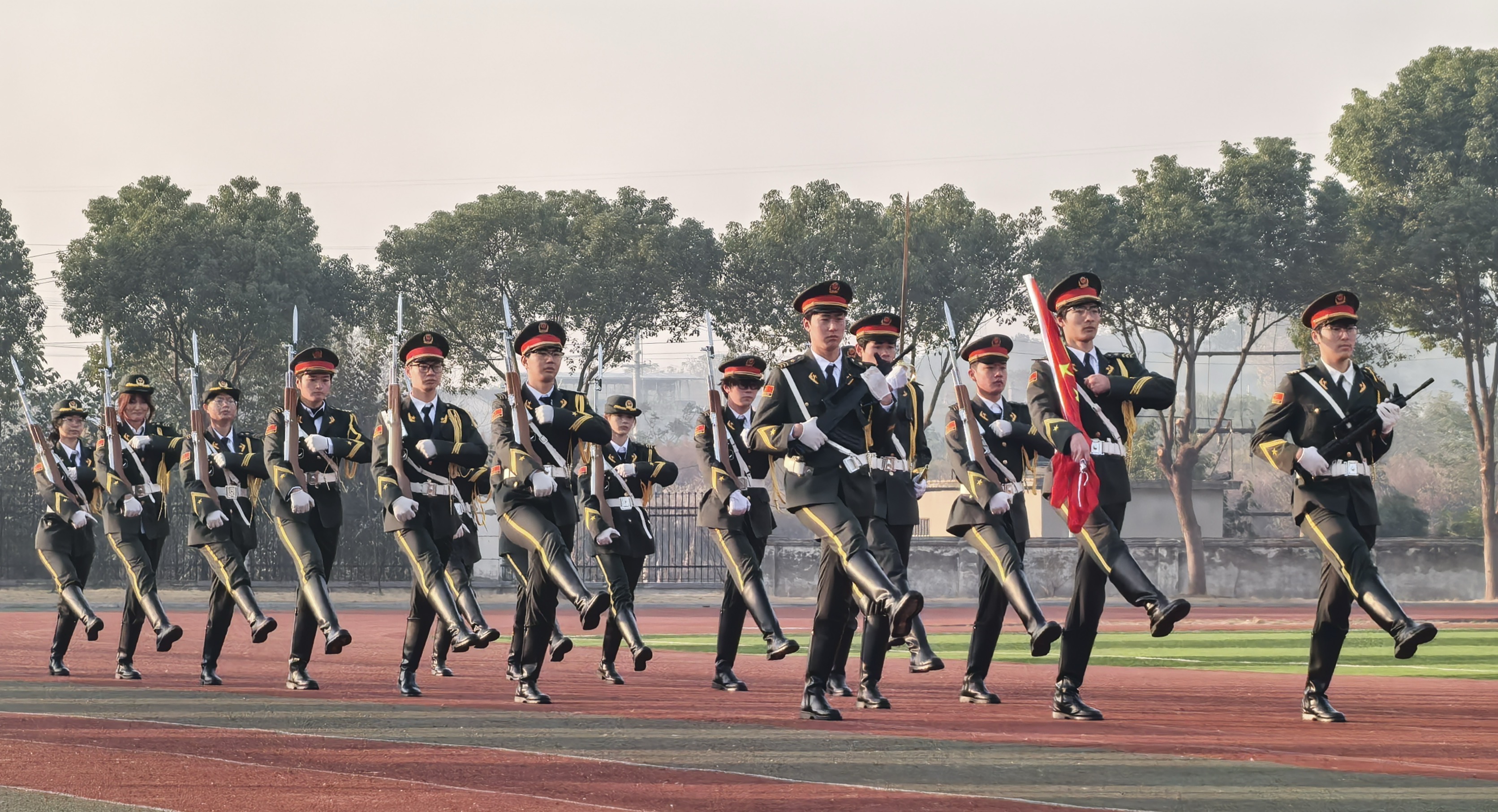 清晨的第一缕阳光洒在大地上,迎着这温暖而充满希望的朝阳,国旗护卫队的队员们身着整齐的制服,精神抖擞地迈着铿锵有力的步伐,庄严而神圣地护送着五星红旗缓缓入场。伴随着雄壮激昂、催人奋进的《义勇军进行曲》旋律,鲜艳的五星红旗在众人的注视下冉冉升起,迎风飘扬,显得格外庄重而威严。此时,全体师生整齐列队,肃立注目,神情庄重地行注目礼,齐声高唱国歌,那嘹亮的歌声在校园上空回荡。在这一刻,浓浓的爱国之情与强烈的民族自豪感在每个人的心中激荡澎湃,仿佛一股无形的力量,激励着每一个合职师生为祖国的繁荣昌盛而不懈奋斗。