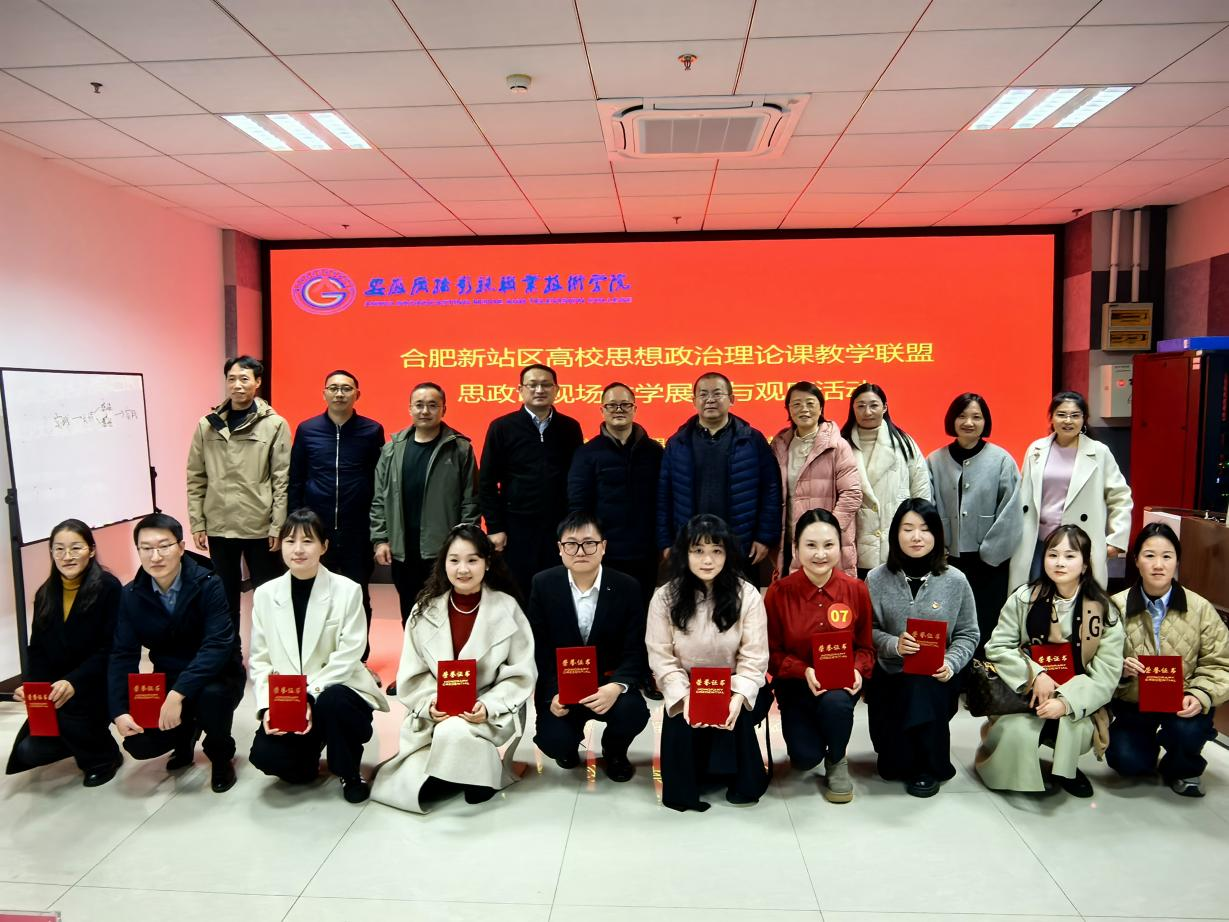 为深入学习贯彻党的二十届四中全会精神,进一步推进高校思政课建设和发展,12月18日下午,由新站区高等学校思想政治理论课教学联盟(以下简称教学联盟)主办、安徽广播影视职业技术学院承办的2025年教学联盟思政课教学展示与观摩活动,在该校马克思主义学院明德育人馆举行。我校马克思主义学院党支部书记王文飞及部分思政课教师代表应邀参加。