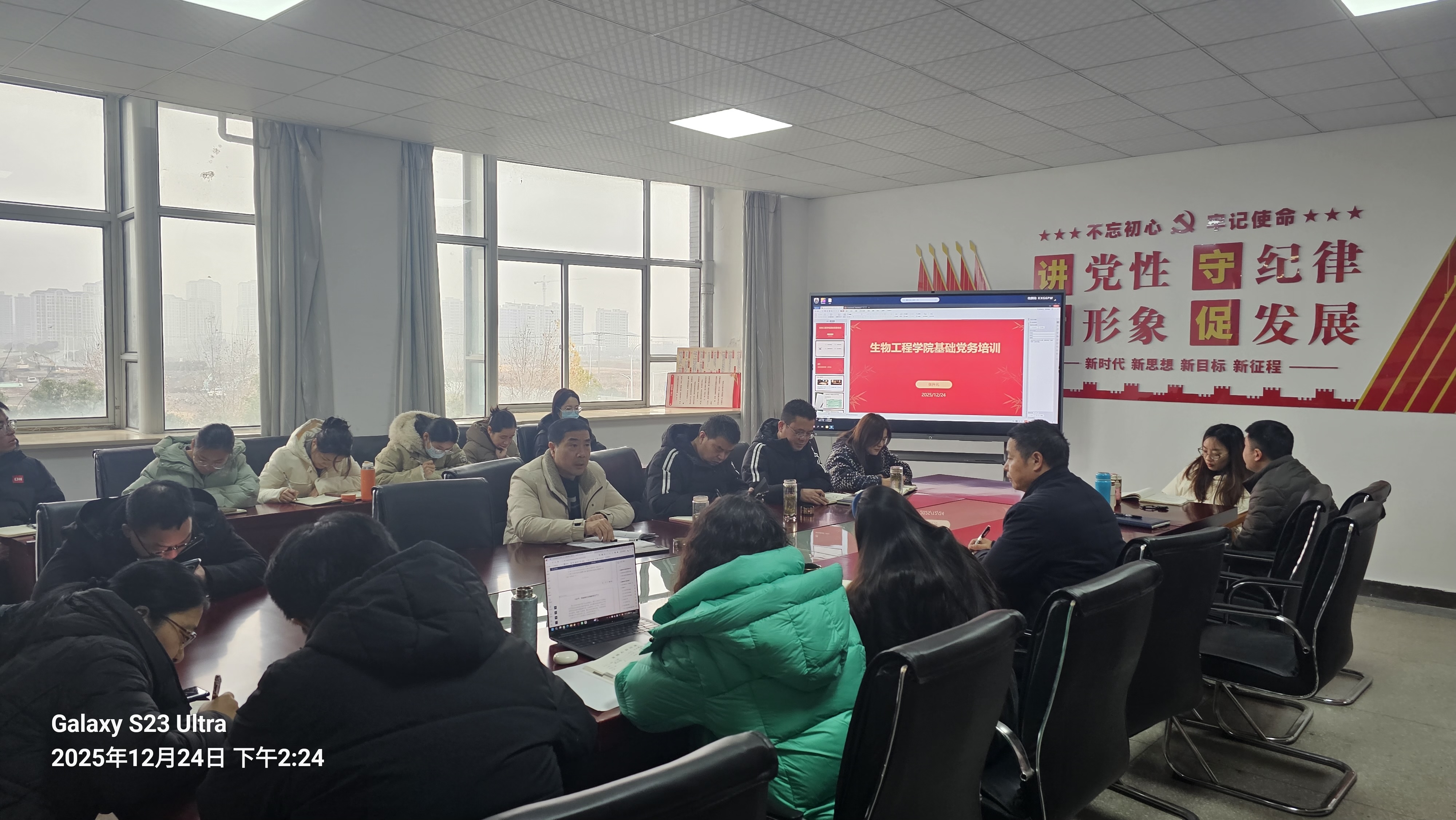 为深入学习贯彻党的二十届四中全会精神,扎实推进生物工程学院党建工作标准化规范化建设,全面提升各党支部履职能力与党务工作水平,该院于12月24日下午在党员活动室举办“党的二十届四中全会精神宣讲会暨党建工作专题会”。会议由该院党总支副书记(主持党总支工作)慈龙保主持,全体党员同志参会。