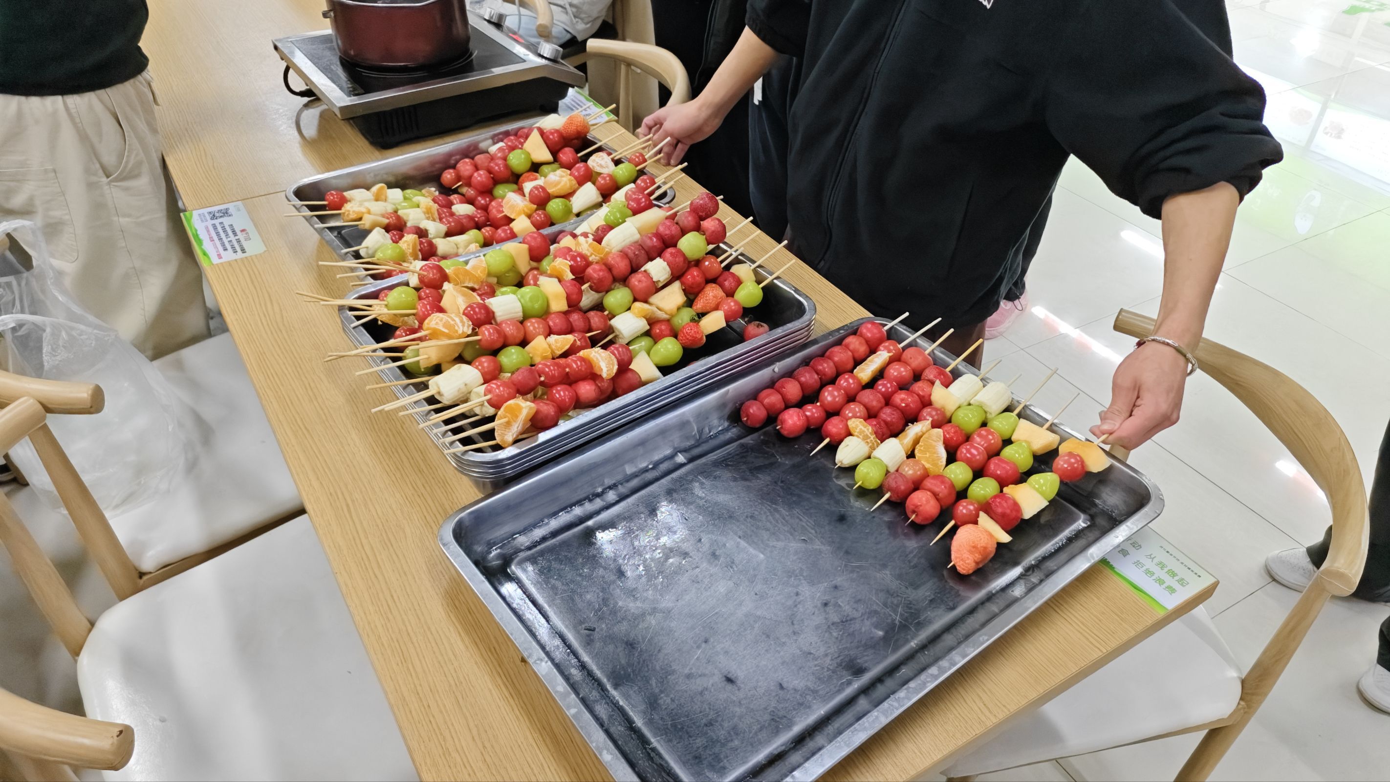饺香四溢,情暖冬至。12月21日下午,学生食堂一楼洋溢着热闹温馨的气氛。同学们分组协作,揉面、擀皮、包馅,在志愿者们指导下亲手制作饺子。活动还创新融入冰糖葫芦制作环节,熬糖、穿果、挂浆,红亮晶莹的糖葫芦与白白胖胖的饺子相映成趣。大家边做边聊,互帮互助,最后共同品尝劳动成果,在美食与欢笑中共度“冬至大如年”的团圆时光。