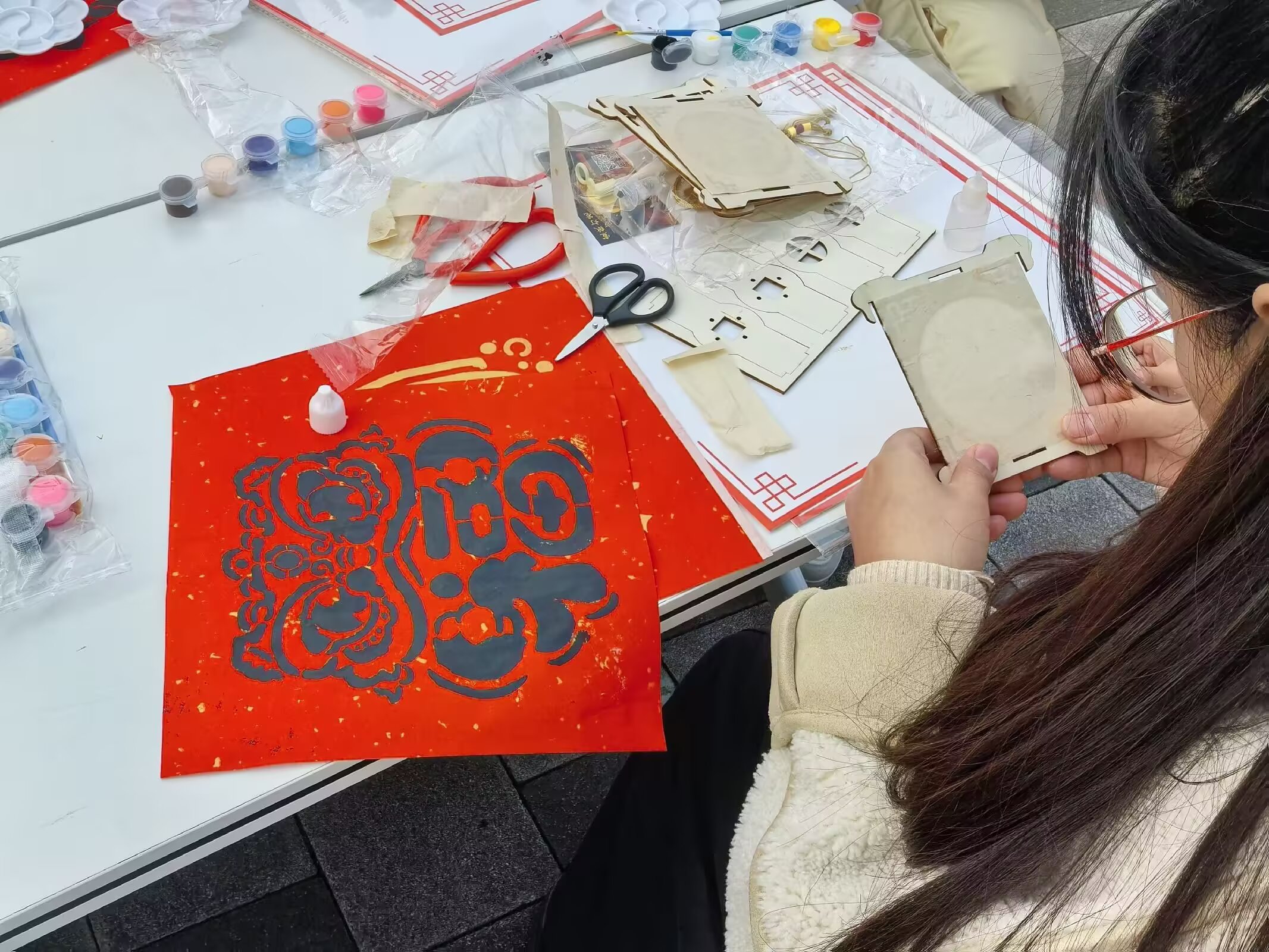 笔墨书福,非遗添彩。12月10日下午,北教小广场迎来“笔墨迎百福·非遗闹春”主题活动。同学们在志愿者指导下,体验拓印福字与DIY小灯笼制作。红宣纸上拓印的“福”字笔墨饱满,小灯笼在巧手中渐次成型。活动现场还设置了“新春非遗成果墙”与“幸运抽福”互动环节,同学们纷纷展示作品、分享心得,在墨香与笑语中传承非遗文化,迎接新春到来。