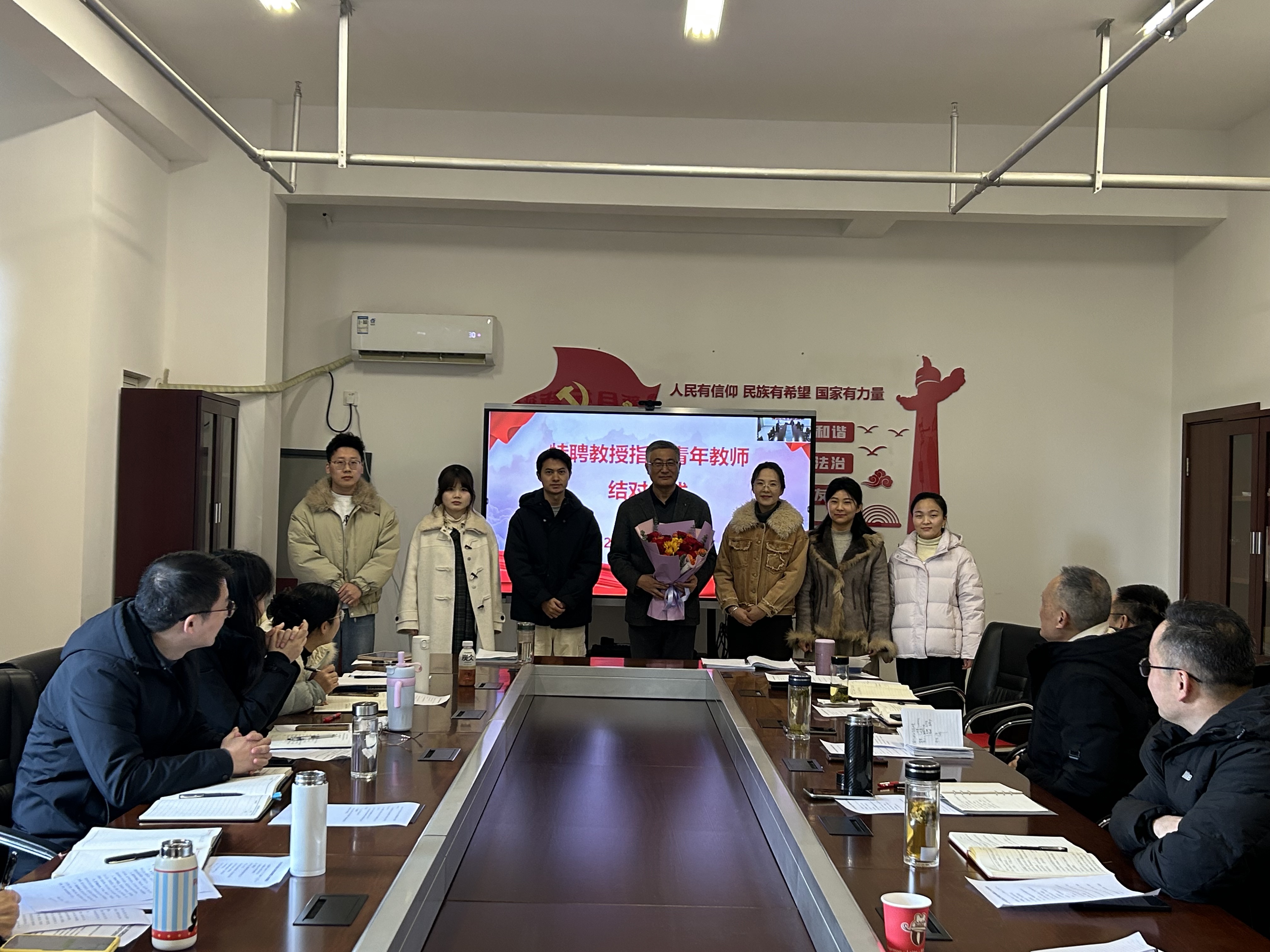 为深入贯彻落实习近平总书记关于思政课建设的重要指示精神,强化师资队伍梯队建设,发挥“传帮带”作用,助力青年教师成长,1月13日上午,马克思主义学院在两校区学院会议室同步召开全体教职工大会,并举行特聘教授指导青年教师结对仪式。该院党支部书记王文飞、院长胡心红、特聘教授叶传平和全体党员、教职工参会。