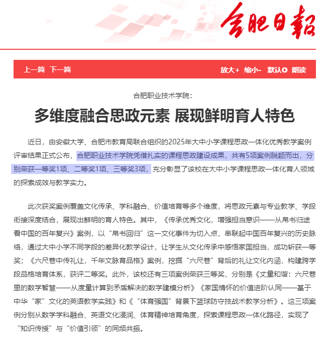 2025年合肥市大中小学课程思政一体化优秀教学案例评审荣获一等奖1项、二等奖1项、三等奖3项